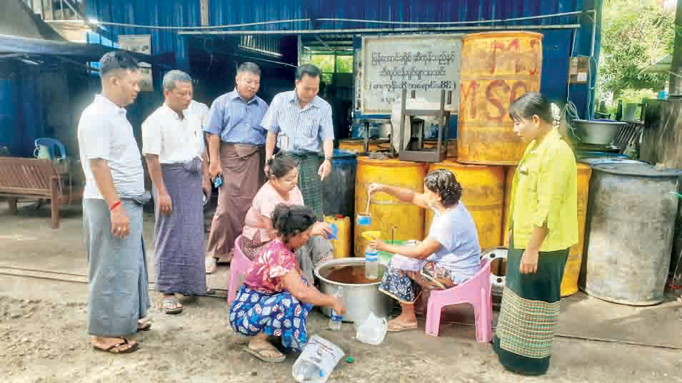 ဧရာဝတီတိုင်းဒေသကြီး မြန်အောင်မြို့နယ် ဆီကုန်သည်နှင့် ဆီလုပ်ငန်းရှင်များအသင်းက အမှတ်(၁)ရပ်ကွက်၌ ယနေ့နံနက်ပိုင်းတွင် စားအုန်းဆီဝယ်ယူခွင့် စာအုပ်ဖြင့် အိမ်ထောင်စုတစ်စုလျှင် ၅၀ ကျပ်သားနှုန်းဖြင့် စားအုန်းဆီ ရောင်းချပေးသည်။