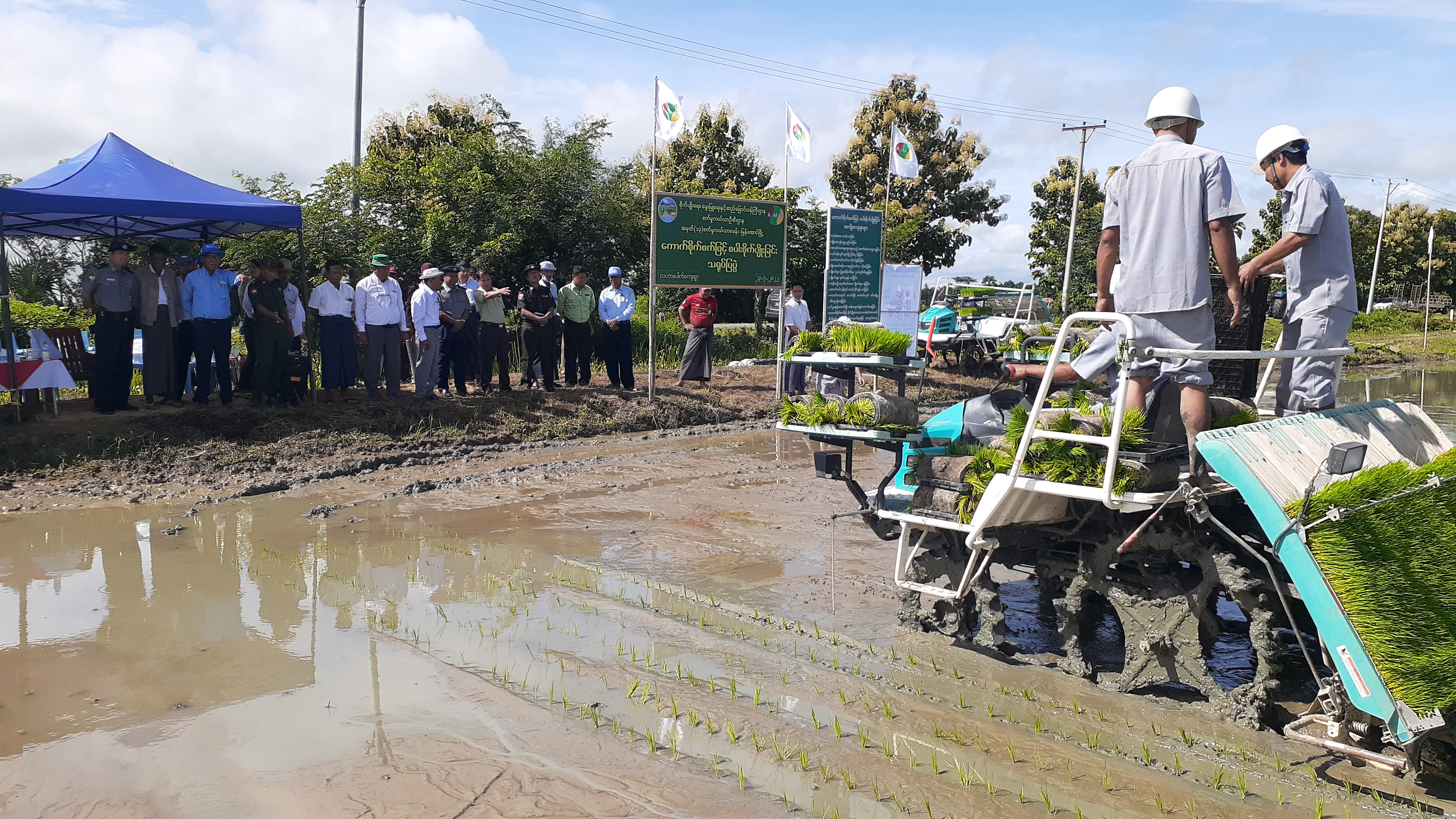 ဧရာဝတီတိုင်းဒေသကြီး၊ မြန်အောင်ခရိုင်၊ မြန်အောင်မြို့နယ် စက်မှုလယ်ယာ ဦးစီးဌာန အမှတ်(၁၃) စက်မှုလယ်ယာစခန်းမှ ၂၀၂၂-၂၀၂၃ ခုနှစ် ကောက်စိုက်စက်ဖြင့် မိုးစပါးစိုက်ပျိုးခြင်း သရုပ်ပြပွဲကို ဇူလိုင် ၂၃ ရက် နံနက်ပိုင်းက လဟာပေါက်ကျေးရွာအုပ်စု စနစ်ကျ ဧက ၄၀၀ ကွင်းရှိ ကွင်းအမှတ် (၂၃၇/က) တောင်သူ ဦးအုန်းလွင်၏ လယ်မြေတွင် ပြုလုပ်ခဲ့သည်။