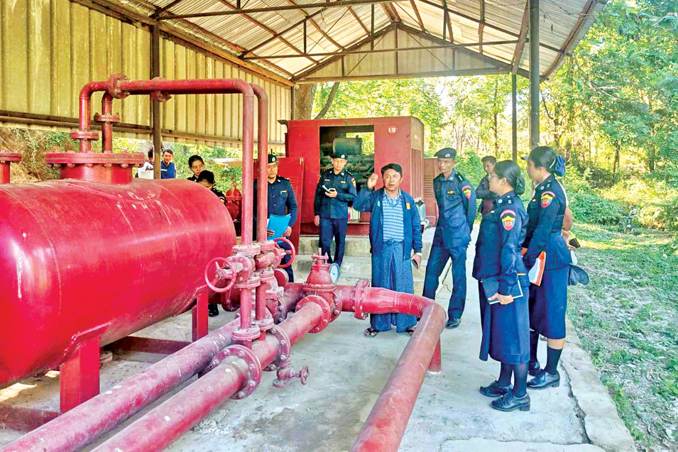 မကွေးတိုင်းဒေသကြီး မင်းဘူးမြို့ မန်းရေနံမြေဧရိယာရှိ ရေနံစိမ်း သိုလှောင်ကန်များ မီးဘေးလုံခြုံရေးနှင့် မန်းရေနံမြေလုပ်ငန်းခွင် မီးဘေးအန္တရာယ် ကြိုတင်ကာကွယ်ရေးလုပ်ငန်းများ စစ်ဆေးခြင်းကို မီးသတ်ဦးစီးဌာနမှ တာဝန်ရှိသူများက နိုဝင်ဘာ ၂၅ ရက် နံနက်ပိုင်းက ကွင်းဆင်း ဆောင်ရွက်သည်။