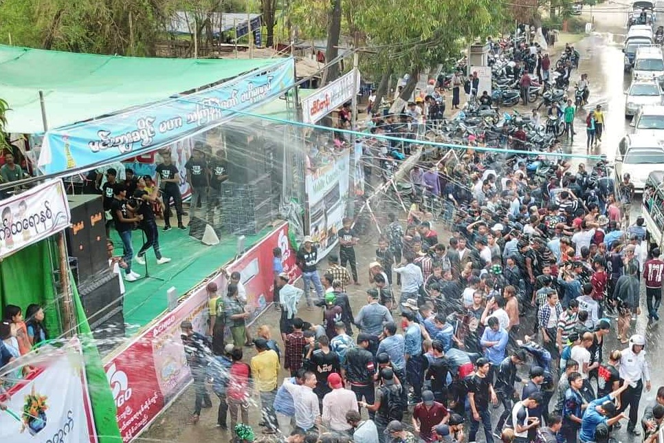 မင်းဘူးမြို့၌ သင်္ကြန်အကြတ်နေ့ အေးချမ်းပျော်ရွှင်စွာ ရေကစားကြသူများဖြင့် စည်ကားလျက်ရှိ