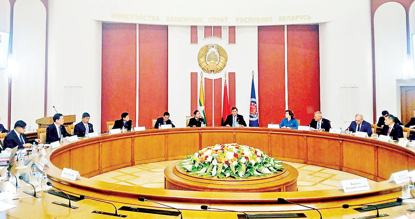 မြန်မာ-ဘယ်လာရုစ် ကုန်သွယ်ရေးနှင့်စီးပွားရေး ပူးပေါင်းဆောင်ရွက်မှု ပူးတွဲကော်မတီ၏ ဒုတိယ အကြိမ် အစည်းအဝေးကို အောက်တိုဘာ ၂ ရက်တွင် ဘယ်လာရုစ် နိုင်ငံခြားရေးဝန်ကြီးဌာန၌ ပူးတွဲ ဥက္ကဋ္ဌများဖြစ်ကြသည့် ရင်းနှီးမြှုပ်နှံမှုနှင့် နိုင်ငံခြားစီးပွားဆက်သွယ်ရေးဝန်ကြီးဌာန ပြည်ထောင်စုဝန်ကြီး ဒေါက်တာဝါဝါမောင်နှင့် ဘယ်လာရုစ်သမ္မတနိုင်ငံ နိုင်ငံခြားရေးဝန်ကြီးဌာန ဝန်ကြီး မစ္စတာ မက်ဆင်း ရူဇန်ကော့ဗ်တို့က ဦးဆောင်ကျင်းပခဲ့သည်။