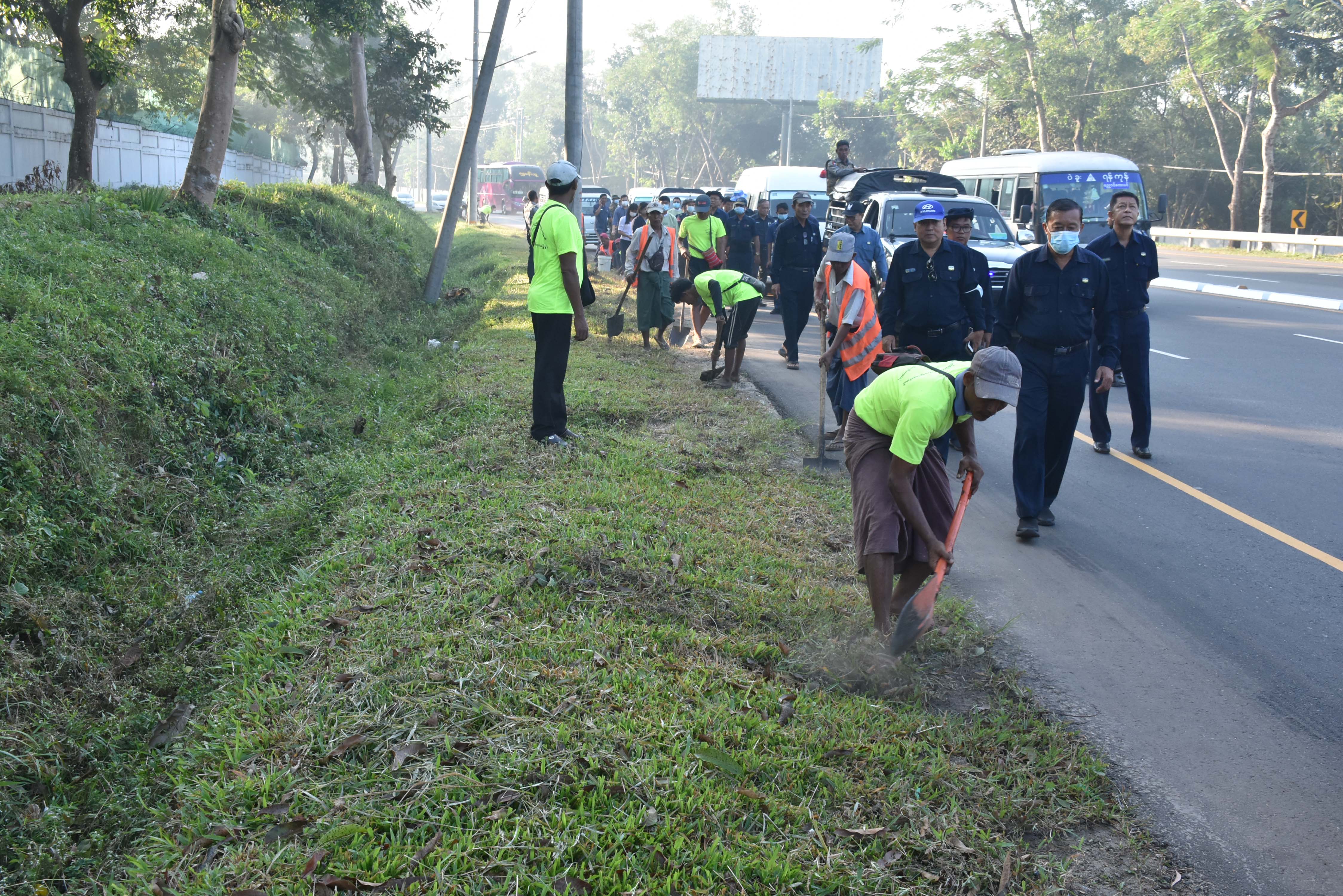 ထို့နောက် ဒုတိယမြို့တော်ဝန်နှင့် အဖွဲ့သည် ပြည်လမ်းနှင့် နွယ်ခွေလမ်းဆုံသို့ သွားရောက်၍ မြက်ပင်ချုံနွယ်များ ရှင်းလင်းနေမှု၊ အရိပ်ရပင်များ၏ အုပ်မိုးကိုင်းများ ခုတ်၍ ဖြတ်ညှိပုံသွင်းနေမှု၊ လမ်းလယ်ကျွန်းတြိဂံ ပြုလုပ်ဆောင်ရွက်နေမှုတို့ကို ကြည့်ရှုစစ်ဆေးပြီး လမ်းလယ်ကျွန်းတြိဂံအား InterLock ခင်းကျင်းရန် မှာကြားသည်။