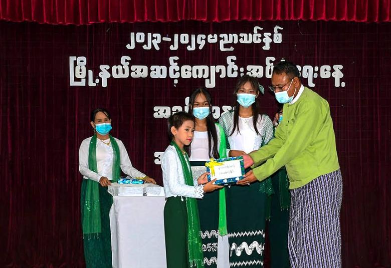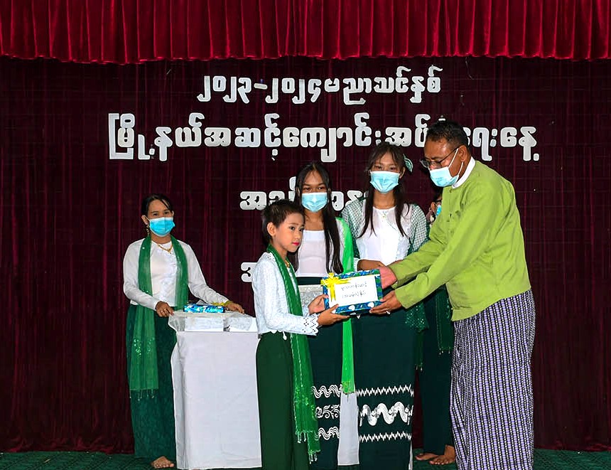 နိုင်ငံတော်မှ အခမဲ့ဖြန့်ဝေသော အခြေခံပညာ အထက်တန်း၊ အလယ်တန်း၊ မူလတန်း ကျောင်းသား ကျောင်းသူများအား ကျောင်းသုံးပုံနှိပ်၊ ဗလာစာအုပ်၊ ခဲတံနှင့် ဘောပင်များ၊ ကျောင်းဝတ်စုံများကို မြင်းခြံခရိုင် စီမံအုပ်ချုပ်ရေးအဖွဲ့ ဥက္ကဋ္ဌနှင့် တာဝန်ရှိသူများက ပေးအပ်ရာ ကျောင်းသား ကျောင်းသူများက လက်ခံရယူသည်။ ထို့နောက် အခမ်းအနားကို အမှတ်(၃) အခြေခံပညာ အထက်တန်းကျောင်းမှ ကျောင်းသား ကျောင်းသူများက "ပြည်မြန်မာ" သီချင်းဖြင့် ဧည့်ခံဖျော်ဖြေသည်။