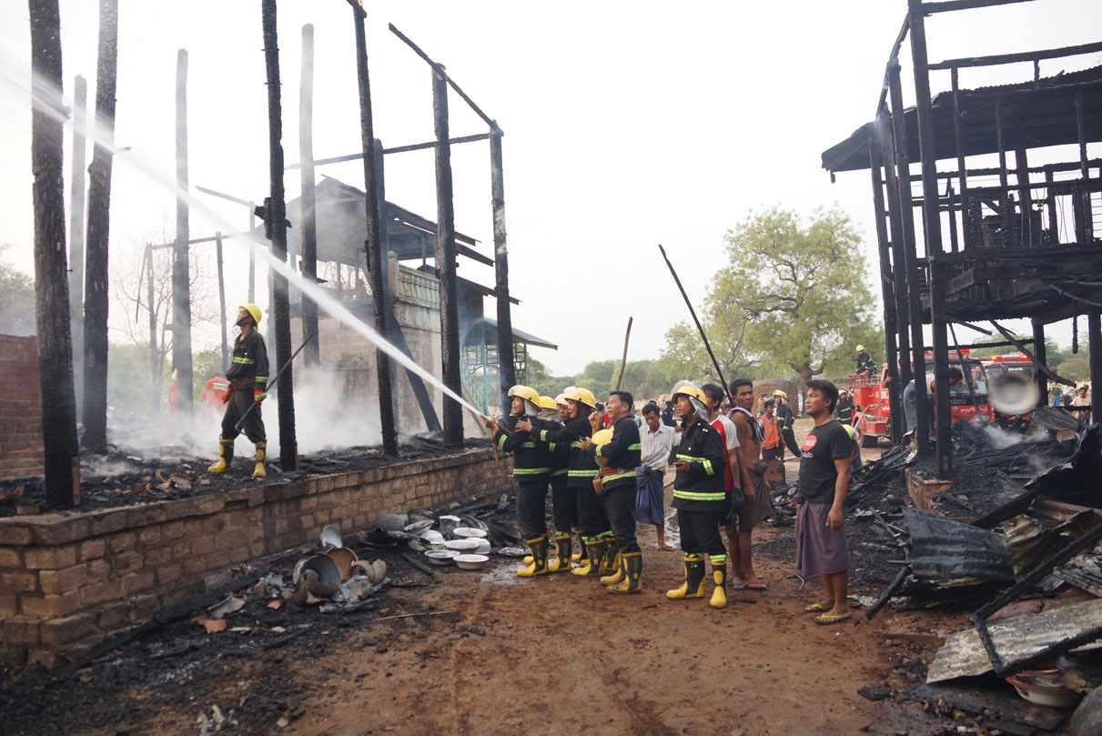 အဆိုပါ မီးလောင်မှုဖြစ်ပွားရာသို့ ခရိုင်မီးသတ် ဦးစီးမှူး ဦးအောင်ကျော်နိုင် ဦးဆောင်၍ မီးငြှိမ်းသတ်ယာဉ် (၈) စီး၊ ရေသယ်ယာဉ် (၅) စီး၊ ပုဂ္ဂလိက ရေသယ်ယာဉ် (၂) စီးတို့ဖြင့် ငြှိမ်းသတ်ခဲ့ရာ နံနက် ၅ နာရီ ၅၅ မိနစ်တွင် မီးလုံးဝငြိမ်းသွားခဲ့သည်။ မီးလောင်မှုဖြစ်ပွားရခြင်းမှာ ဘုန်းကြီးကျောင်းရှိ သံဃာတော် ဦးဝိသုတအရုဏ်ဆွမ်း ချက်ရာမှတစ်ဆင့် အဆောက်အဦသို့ မီးကူးစက်လောင်ကျွမ်းခဲ့ခြင်းဖြစ်ပြီး အဆိုပါ မီးလောင်မှုကြောင့် ပေ (၈၀x၄၀) ပျဉ်ထောင်၊ သွပ်မိုး၊ အုတ်ခင်း၊ နှစ်ထပ်ကျောင်းဆောင် (၁) လုံး၊ ပေ (၄၀x၃၀) ပျဉ်ထောင်၊ သွပ်မိုး၊ အုတ်ခင်း (၁) လုံး၊ ပေ (၂၀) ပတ်လည် သွပ်မိုး၊ ထရံကာ မြေစိုက် (၁) လုံး၊ ပေ (၁၅x၁၀) ပျဉ်ထောင်၊ သွပ်မိုး၊ အုတ်ခင်း၊ မီးစက်ထားရာအဆောက်အဦ (၁) လုံး စုစုပေါင်းတန်ဖိုးကျပ် ၆၃၀ဝ၀ဝ၀ ခန့် ဆုံးရှုံးခဲ့ကြောင်း သိရှိရသည်။