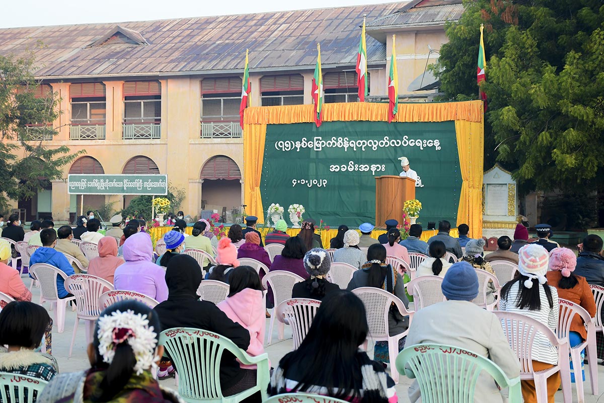 မန္တလေးတိုင်းဒေသကြီး မြင်းခြံမြို့တွင် (၇၅) နှစ်မြောက် စိန်ရတု လွတ်လပ်ရေးနေ့ အထိမ်းအမှတ် သဝဏ်လွှာဖတ်ကြားခြင်းအခမ်းအနားကို အထက(၁) ကျောင်းဝန်းအတွင်းတွင် ယနေ့ နံနက် ၇ နာရီက ပြုလုပ်ကျင်းပခဲ့သည်။