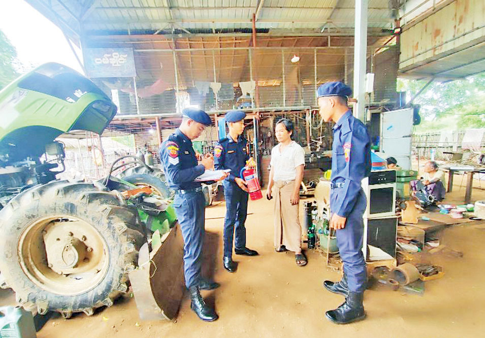 မကွေးတိုင်းဒေသကြီး မင်းလှမြို့နယ် မီးသတ်ဦးစီးဌာနမှ ဦးဆောင်၍ မီးဘေးအန္တရာယ် ကြိုတင်ကာကွယ်နိုင်ရေးအတွက် ဝမ်ချိုင်းအသေးစားစက်မှုလက်မှု လုပ်ငန်းစစ်ဆေးခြင်းကို ယနေ့ နံနက် ၉ နာရီက ဆောင်ရွက်သည်။