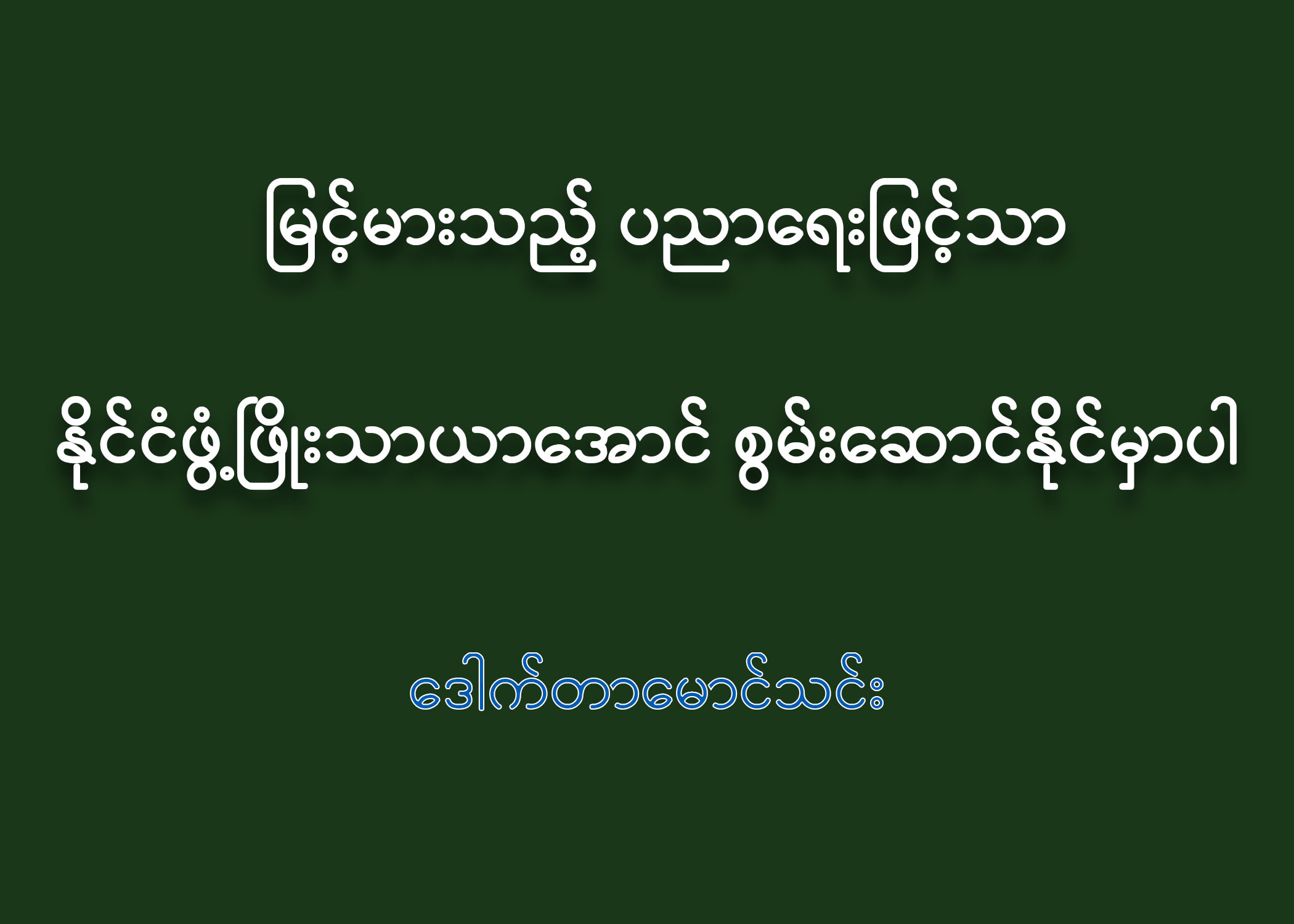ထိုသို့ အသိဉာဏ်ကြွယ်ဝသည့် မြန်မာနိုင်ငံသားများဖြစ်ထွန်းရန် မြန်မာ့ပညာရေးသည် ယနေ့လို “စာမေးပွဲရမှတ်ပြိုင်ပွဲ” မှာ ပျော်မွေ့နသည့် လမ်းကြောင်းမှခွဲထွက်၍ နိုင်ငံတကာမှာ ကျင့်သုံးနေသည့် “ဝေဖန်ပိုင်းခြားနိုင်မှု ရင့်သန်စေ သည့်လမ်းကြောင်း” သို့ ဦးတည်လျှောက်လှမ်းရန် မလွဲမသွေလိုပေလိမ့်မည်။ အဘယ်ကြောင့်ဆိုသော် ယနေ့လူ့အဖွဲ့အစည်းအတွင်း ဖြစ်ပေါ်နေသည့် ဒီမိုကရေစီဗရုတ်သုတ်ခဖြစ်မှုအပါအဝင် အခြားသော ကောင်းမှု၊ ဆိုးမှုမှန်သမျှသည် လွန်ခဲ့သည့် နှစ် ၂၀ ကျော်ကာလက “စာမေးပွဲရမှတ်ပြိုင်မှု” လောက် သာလေ့ကျင့်ပေးခဲ့ပြီး လူ့အဖွဲ့အစည်းတစ်ခုလုံး “တွေးခေါ်မြော်မြင်တတ်သည့် ဉာဏ်ရည်မြင့်မား စေမှုကို လေ့ကျင့်ပေးခြင်း အားနည်းခဲ့သည့် ပညာ ရေး၏ ရလဒ်” ပင်ဖြစ်သည်ဟု သုံးသပ်မိပါသည်။