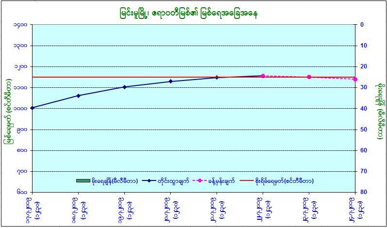 ယနေ့မြန်မာစံတော်ချိန် ၂ နာရီခွဲ အချိန် တိုင်းထွာချက်အရ ဧရာဝတီမြစ်ရေသည် မြင်းမူမြို့တွင် (၂)လက်မခန့် ယင်းမြို့၏ စိုးရိမ်ရေမှတ်အထက်သို့ ကျော်လွန်နေပြီး နောက်(၂)ရက်အတွင်း ယင်းမြို့၏ စိုးရိမ်ရေမှတ်အောက်သို့ ပြန်လည်ကျဆင်းနိုင်ကြောင်း သိရသည်။