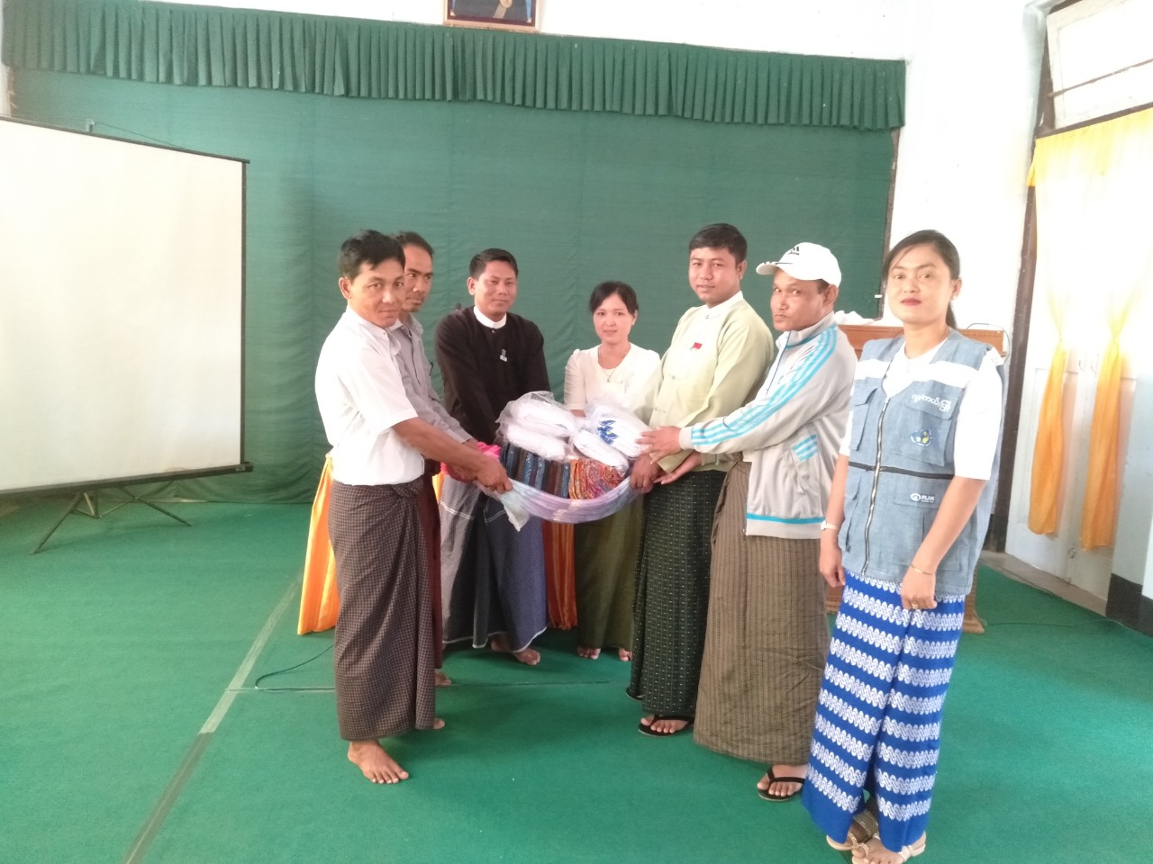 ထို့နောက် ခရိုင်လူမှုဝန်ထမ်းကယ်ဆယ်ရေးနှင့် ပြန်လည်နေရာချထားရေးဦးစီးဌာနမှ မင်းပြားမြို့နယ်၊ ကျွန်းတောကျေးရွာရှိ ရွှေဖောင်တောဘုန်းတော်ကြီးကျောင်း ကယ်ဆယ်ရေး စခန်းနှင့် ပန်းမြောင်းအုပ်စု၊ အောင်မင်္ဂလာဘုန်းတော်ကြီးကျောင်းကယ်ဆယ်ရေးစခန်းများသို့ ထွက်ပြေးတိမ်းရှောင်ခိုလှုံရောက်ရှိလာကြသော တိုက်ပွဲရှောင်ပြည်သူအိမ်ထောင်စု စုစုပေါင်း (၁၀၄၁)စုတို့အတွက် ကျားလုံချည်၊ မလုံချည်၊ တဘက်နှင့် တီရှပ် ပစ္စည်းအမျိုးအစား၄ မျိုး တို့အား တာဝန်ရှိသူများမှသွားရောက်ထောက်ပံ့ပေးအပ်ခဲ့သည်။