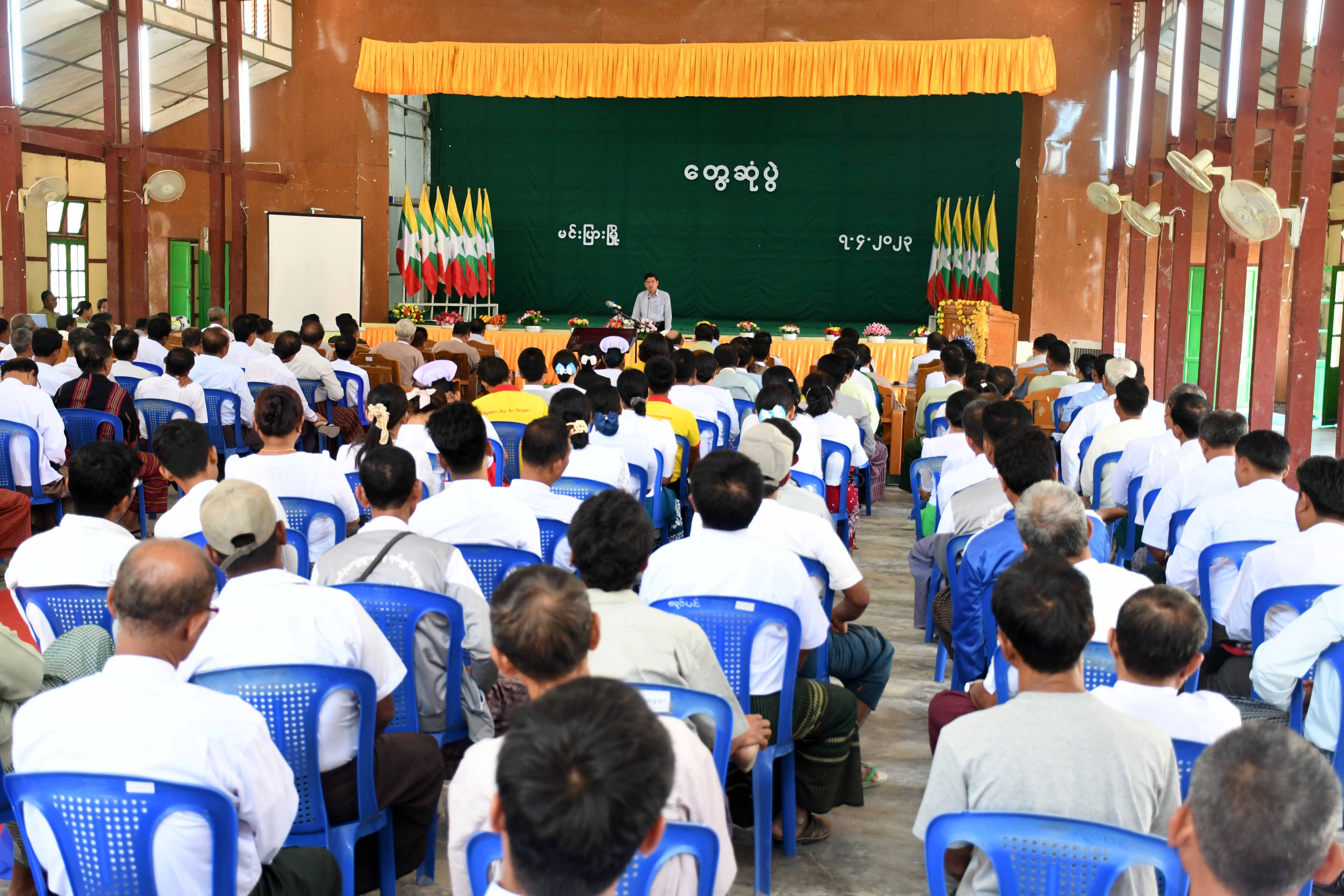 ထို့နောက် ပြည်နယ်ဝန်ကြီးချုပ်နှင့်အဖွဲ့သည် မင်းပြားမြို့၊ ရာမောင်ခန်းမ၌ ဌာနဆိုင်ရာများ၊ မြို့မိ၊ မြို့ဖများ၊ လူမှုရေးအသင်းအဖွဲ့များ၊ မြို့နယ်အတွင်းရှိ လုပ်ငန်းရှင်များနှင့်တွေ့ဆုံပွဲသို့ တက် ရောက်ကြသည်။ တွေ့ဆုံပွဲတွင် မြို့နယ်စီမံအုပ်ချုပ်ရေးအဖွဲ့ဥက္ကဋ္ဌက မင်းပြားမြို့နယ်၏ အုပ်ချုပ်ရေး၊ စီးပွားရေး၊ စိုက်ပျိုးရေး၊ မွေးမြူရေးနှင့် လူမှုရေးဆိုင်ရာအချက်အလက်များကို ရှင်းလင်းတင်ပြပြီး မြို့မိ၊ မြို့ဖများနှင့် လုပ်ငန်းရှင်းများက ဒေသဖွံ့ဖြိုးတိုးတက်ရေးအတွက် လိုအပ်ချက်များကို တင်ပြကြရာ ပြည်နယ်ဝန်ကြီးများနှင့် ပြည်နယ်အဆင့်ဌာနဆိုင်ရာ တာဝန်ရှိသူများက ပြန်လည်ရှင်းလင်းဆွေးနွေးကြသည်။