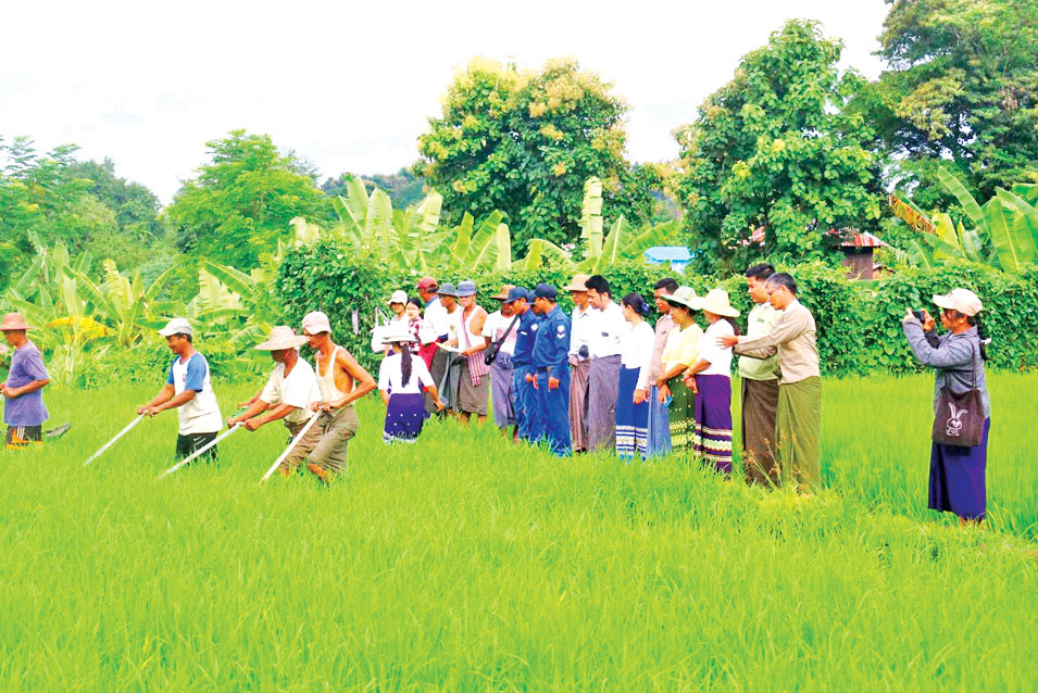 မကွေးတိုင်းဒေသကြီး မင်းတုန်းမြို့နယ် တောင်သူ ဦးလှထွေး၏ လက်ဆွဲ ကောက်စိုက်စက် အသုံးပြု စံပြကွက် မိုးစပါးစိုက်ခင်းတွင် ယနေ့နံနက် ၈ နာရီက ပေါင်းထိုး တမန်းနှိုးကိရိယာဖြင့် ကွင်းသရုပ် ပြပွဲ ကျင်းပရာ မြို့နယ်စီမံခန့်ခွဲရေးနှင့် အုပ်ချုပ်ရေးကော်မတီ ဥက္ကဋ္ဌ ဦးစိုးလင်း၊ စိုက်ပျိုးရေး ဦးစီးဌာန ခေတ္တဦးစီးမှူး ဦးကျော်သန်းစိန်နှင့် ကွင်းဝန်ထမ်းများ၊ ဌာနဆိုင်ရာများနှင့် တံတား ကျေးရွာအုပ်စုမှ တောင်သူများ တက်ရောက်ခဲ့ကြသည်။
