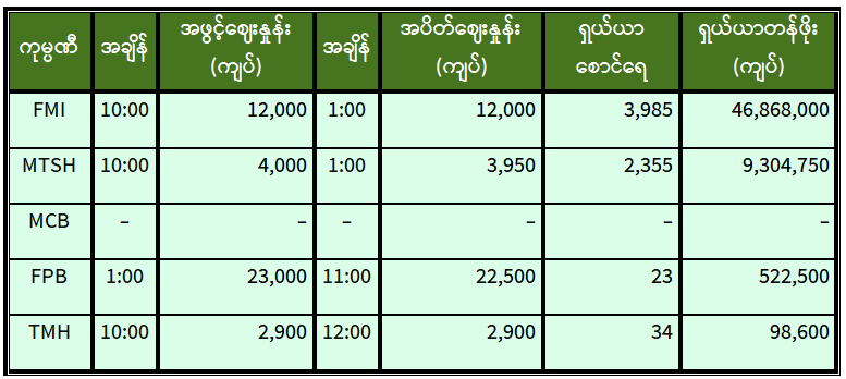 ရှယ်ယာတန်ဖိုး (ကျပ်) |