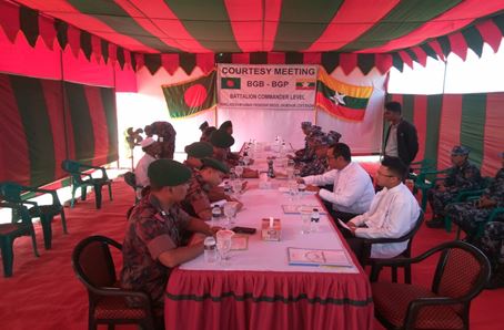 တောင်ပြို(ဝဲ)မြို့၊ နှစ်နိုင်ငံ ချစ်ကြည်ရေးတံတားအနီး ဘင်္ဂလားဒေ့ရှ် နိုင်ငံဘက်ခြမ်း၌ မြန်မာ-ဘင်္ဂလားဒေ့ရှ် နှစ်နိုင်ငံတပ်ရင်းမှူးအဆင့် မိတ်ဘက်တွေ့ဆုံ အစည်းအဝေးကို မတ် ၁၁ ရက် ညနေ ပိုင်းတွင် ပြုလုပ်ခဲ့ရာ အမှတ်(၁) နယ်ခြားစောင့်ရဲတပ်ဖွဲ့မှူး ယာယီဒုတိယရဲမှူးကြီး ကျော်ဝင်းလှိုင် ဦးစီးသည့် တပ်ဖွဲ့ဝင်များနှင့် ဘင်္ဂလားဒေ့ရှ်နိုင်ငံဘက်မှ အမှတ်(၃၄) နယ်ခြားစောင့်တပ်ရင်းမှူး Lieutenant Colonel Ali Haidur Azad Ahamad ဦးစီးသည့်အဖွဲ့တို့ တက်ရောက် ခဲ့ကြောင်း ရဲပြန်ကြားမှ သိရသည်။