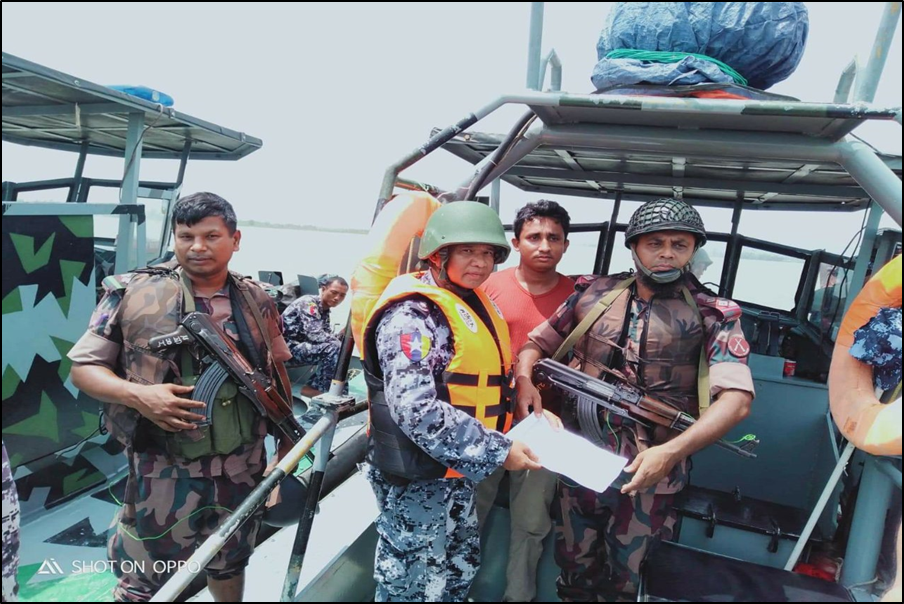 မောင်တောမြို့နယ် နယ်မြေ(၅) အမှတ်(၂) နယ်ခြားစောင့်ရဲကွပ်ကဲမှုအဖွဲ့ခွဲ (ငါးခူရ နယ်မြေရုံး)မှ ရဲမှူးကျော်ဝင်း ဦးစီးသည့် တပ်ဖွဲ့ဝင်များက မေ ၉ ရက် နံနက်ပိုင်းတွင် ရေယာဉ် တပ်ဖွဲ့စု (မောင်တော)မှ ငါးမန်းအမြန်သွားတိုက်ခိုက်ရေး ရေယာဉ်အမှတ် (ဝ၀၂)ပါ(၂)စီး ဖြင့် လည်းကောင်း၊ ဘင်္ဂလားဒေ့ရှ်နိုင်ငံ အမှတ်(၂)နယ်ခြားစောင့်တပ် Nhilla BOP ကင်းစခန်းမှ Nayeb Subedar MD.Salauddin ဦးဆောင်သည့် အဖွဲ့ဝင်များက စက်တပ်ရေယာဉ်(၂)စီးဖြင့် လည်းကောင်း စံပါယ်ပင်ရင်းချောင်းဝထိပ် ရေမိုင်အမှတ်(၁၁)အနီးမှ ပြူးမချောင်းချောင်းဝထိပ် ရေမိုင်အမှတ်(၁၅) အနီးထိ နတ်မြစ်ကြောင်းအတိုင်း နှစ်နိုင်ငံနှစ်ဖက် ညှိနှိုင်း၍ ရေမိုင်လှည့်ကင်း ဆောင်ရွက်ခဲ့ပြီး ရေယာဉ်အမှတ်(ဝ၀၂) ပေါ်၌ နှစ်ဖက်ကင်းလှည့်သည့်အဖွဲ့များ တွေ့ဆုံခဲ့ကြောင်း မြန်မာနိုင်ငံရဲတပ်ဖွဲ့မှ သိရသည်။