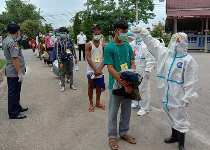 ပြန်လည်ဝင်ရောက်လာကြသည့် မြန်မာနိုင်ငံသားများကို ပြည်နယ်လွှတ်တော်ကိုယ်စားလှယ် ဦးစိုင်းလုံစံခတ်၊ ခရိုင်အုပ်ချုပ်ရေးမှူး ဦးမြင့်နိုင်၊ မြို့နယ်အုပ်ချုပ်ရေးမှူး ဦးချမ်းမြေ့စောနှင့် တာဝန်ရှိသူများက ပြန်လည်လက်ခံခဲ့ကြပြီး ပြန်လည်ဝင်ရောက်လာသူအားလုံးကို ကျန်းမာရေးစစ်ဆေးခြင်းနှင့် အပူချိန်တိုင်းတာခြင်းကို ပြုလုပ်ခဲ့ကြရာ သံသယလူနာတွေ့ရှိရခြင်း မရှိသဖြင့် နေ့ချင်း မော်တော်ယာဉ်များ စီစဉ်ပေး၍ မိမိနေရပ်အသီးသီးသို့ ပြန်လည်စေလွှတ်ခဲ့ကြောင်း သိရသည်။