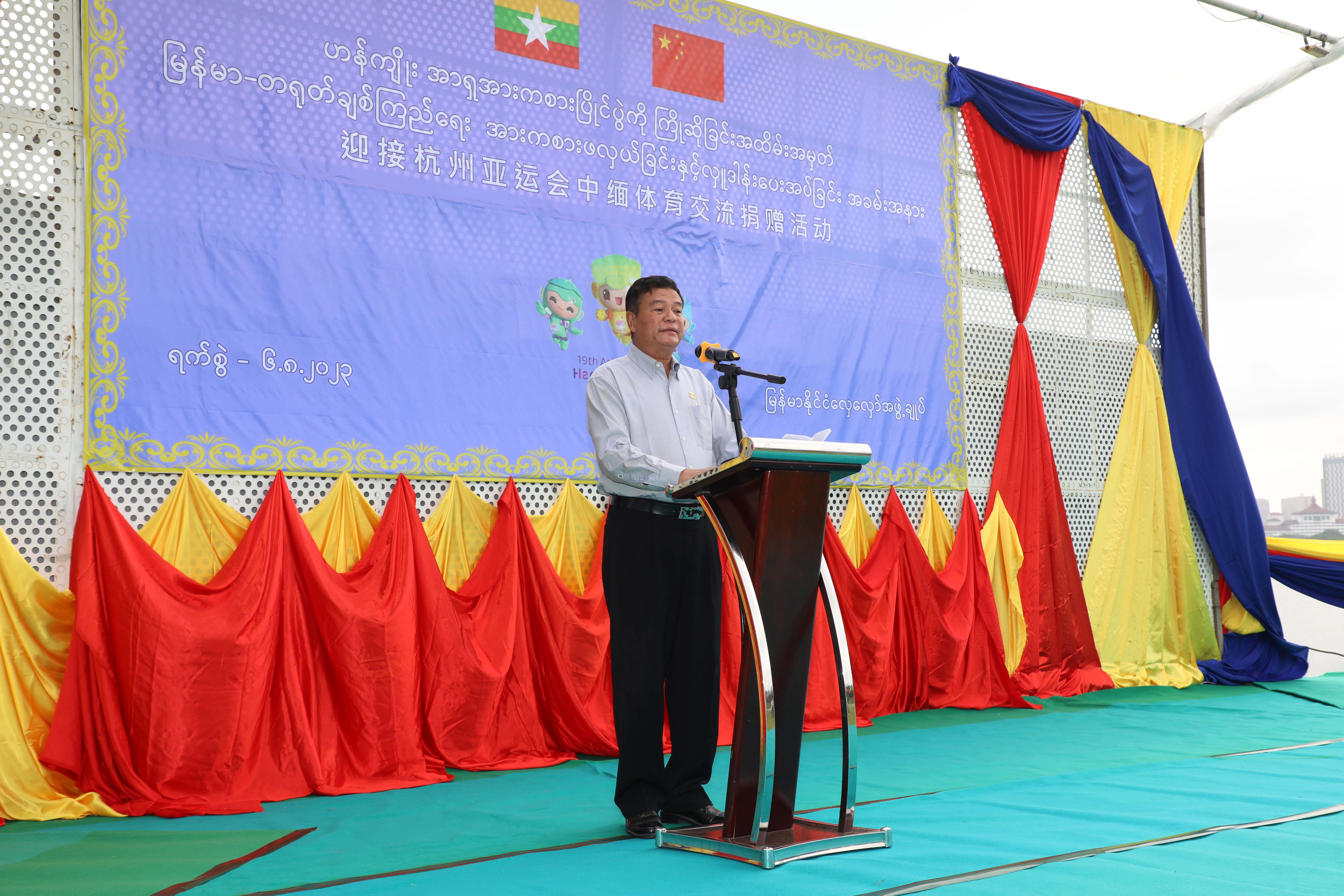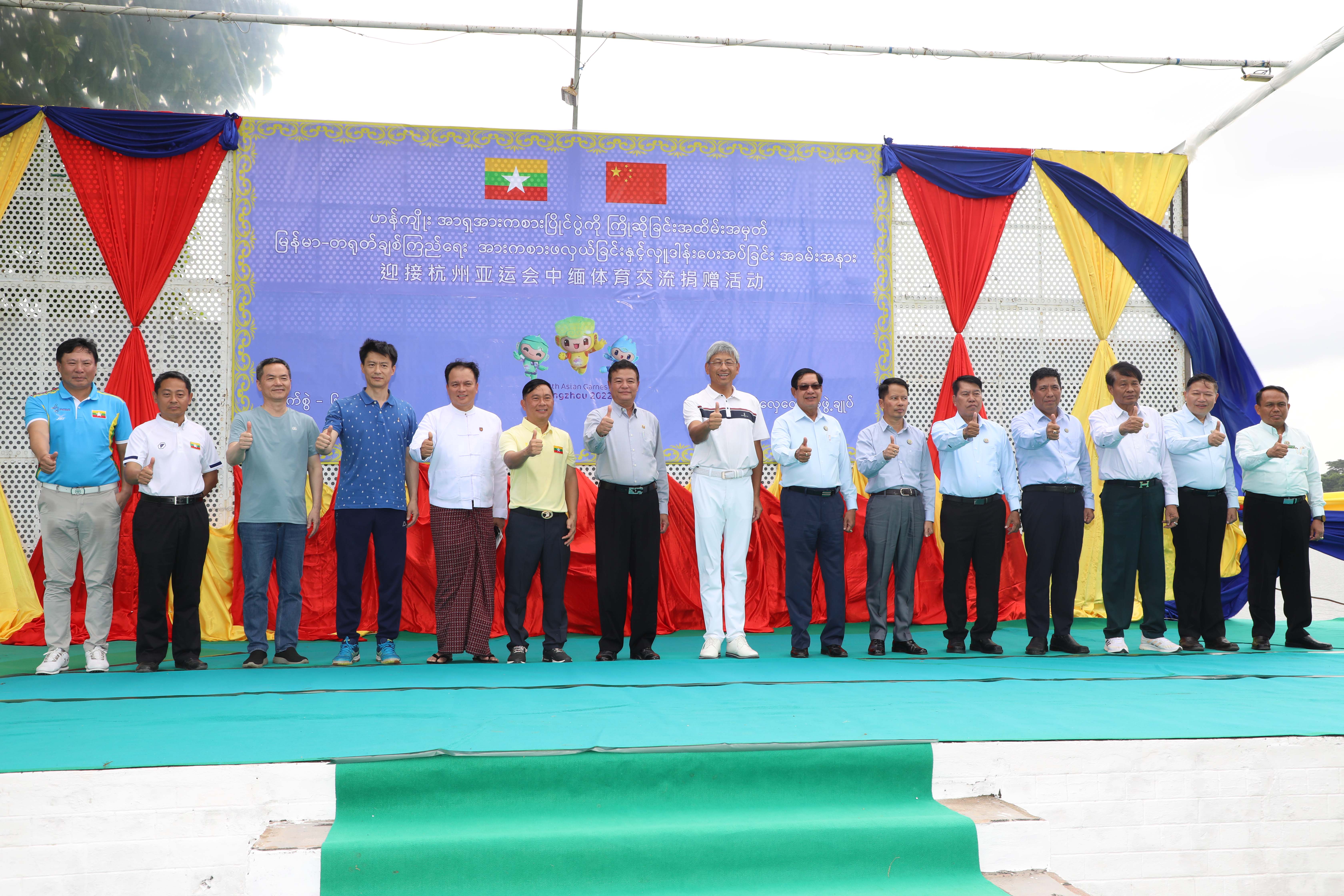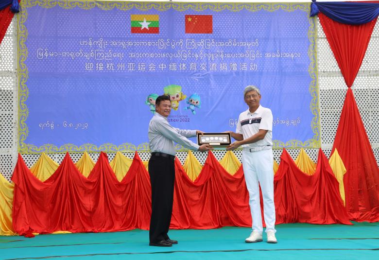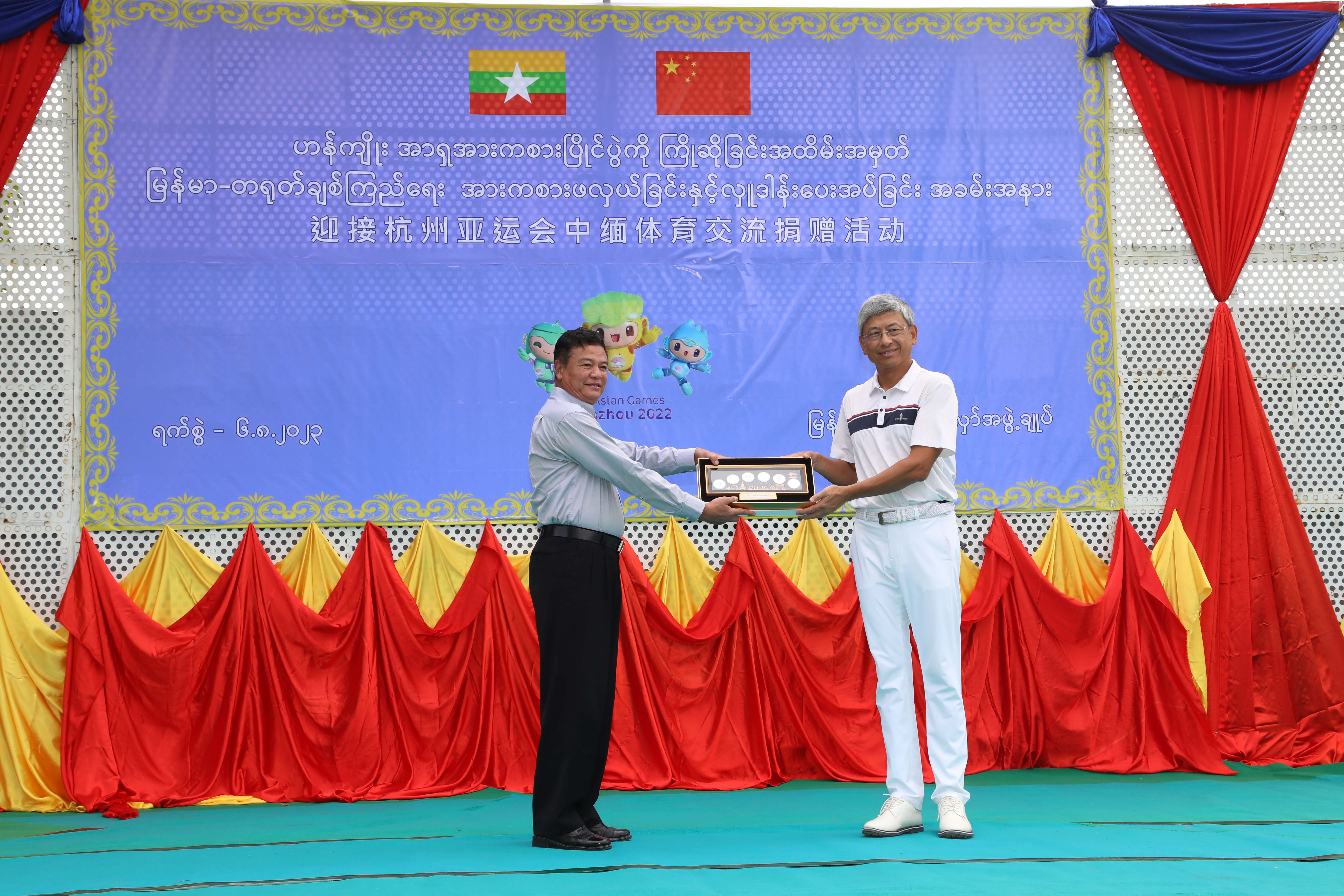 ထို့နောက် တရုတ်သံအမတ်ကြီးက မြန်မာနိုင်ငံ ဝူရှူးအဖွဲ့ချုပ် ၊ မြန်မာနိုင်ငံလှေလှော်အဖွဲ့ချုပ်၊ မြန်မာနိုင်ငံဘောလုံးအဖွဲ့ချုပ်များသို့ အမေရိကန်ဒေါ်လာ ၂၈၀၅ ဒေါ်လာ စီ ပေးအပ်လှူဒါန်းရာ တာဝန်ရှိပုဂ္ဂိုလ်များက လက်ခံရယူခဲ့ကြပြီး ကျေးဇူးတင်စကားပြန်လည်ပြောကြားသည်။