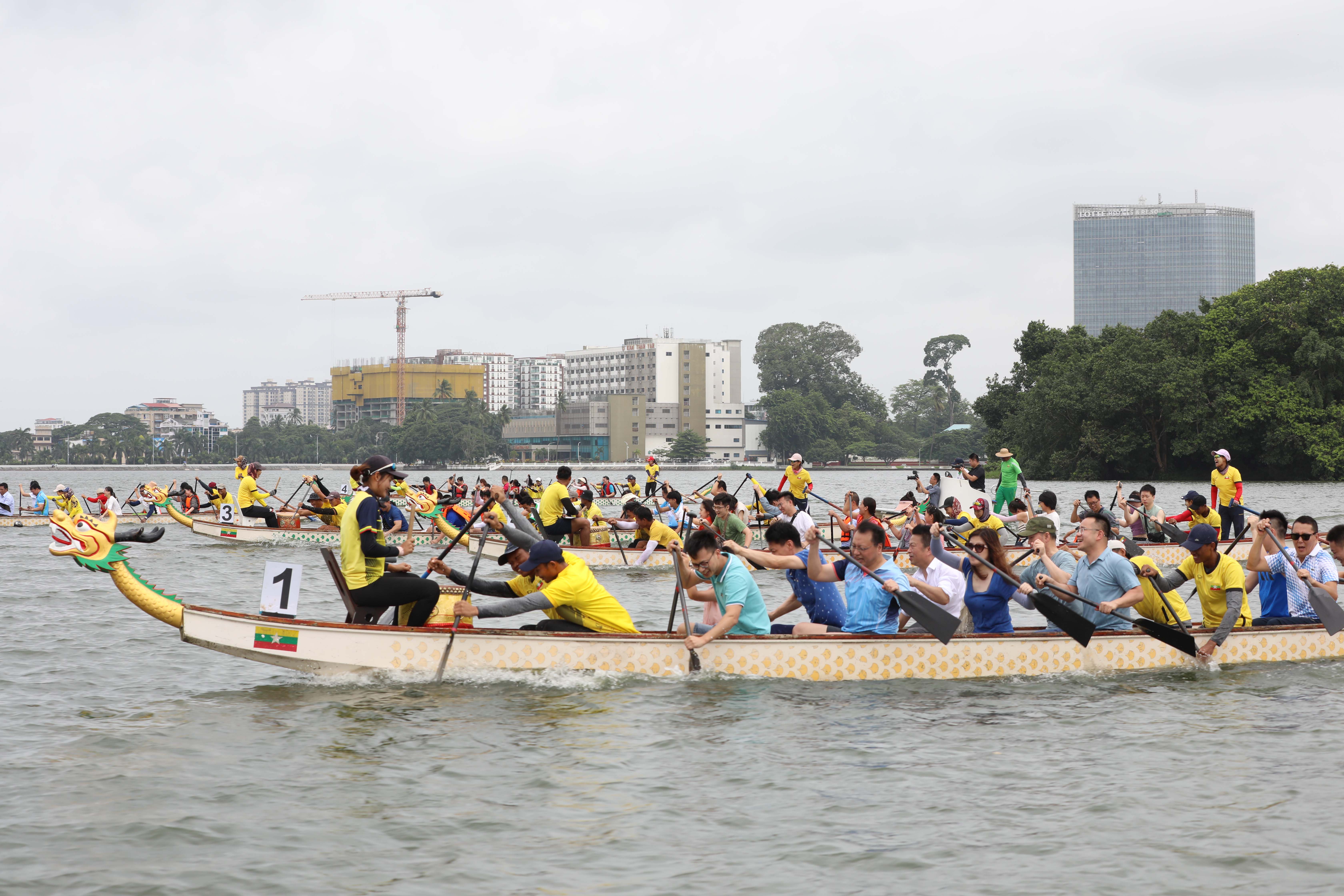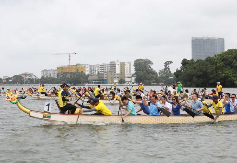 ဟန်ကျိုးအာရှအားကစားပြိုင်ပွဲကို ကြိုဆိုခြင်းအထိမ်းအမှတ် မြန်မာ-တရုတ် ချစ်ကြည်ရေး အားကစားဖလှယ်ခြင်းနှင့် လှူဒါန်းငွေပေးအပ်ခြင်း အခမ်းအနားကို ယနေ့ နံနက် ၉နာရီခွဲတွင် ရန်ကုန်မြို့ အင်းလျားကန်ရှိ မြန်မာနိုင်ငံလှေလှော်အဖွဲ့ချုပ်၌ ကျင်းပသည်။