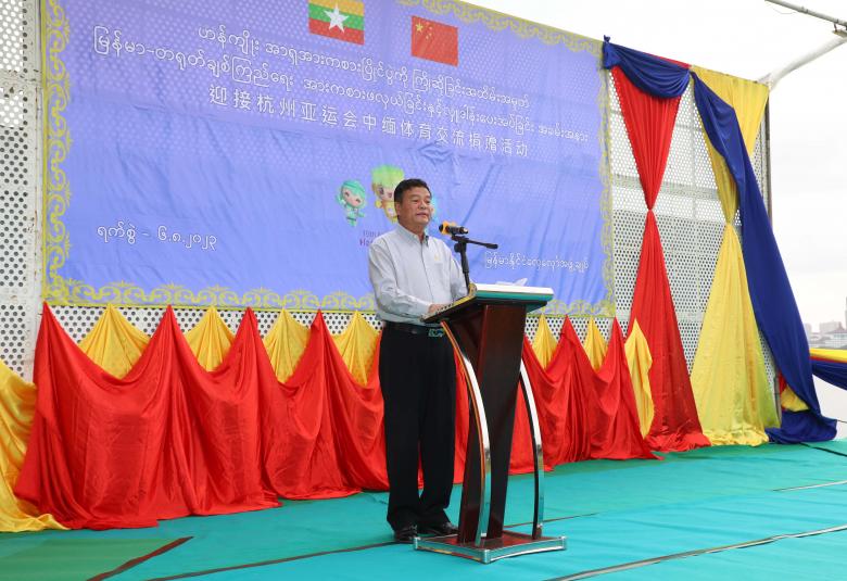 ဆက်လက်၍ တရုတ်သံအမတ်ကြီးက မကြာမီ ဟန်ကျိုးမြို့၌ကျင်းပမည့် (၁၉)ကြိမ်မြောက် အာရှအားကစားပြိုင်ပွဲကြီးတွင်  အာရှတိုက်ရှိ နိုင်ငံပေါင်းစုံ အားကစားသမား ၁၉၀၀၀ ကျော်က  ငြိမ်းချမ်းရေး၊ ချစ်ကြည်ရေး၊ တိုးတက်ရေးဆိုသည့် အာရှအားကစားသံစဉ်ကို အတူဖော်ဆောင် သွားကြမည်ဖြစ်ပါကြောင်း၊ ကိုဗစ် ၁၉  ကာလအလွန် အားကစားကူးလူး ဖလှယ်မှုများကို အတူတကွဖော်ဆောင်၍ မြန်မာ့အားကစားဖွံ့ဖြိုးတိုးတက်ရေးကို ကူညီပေးသွားမည် ဖြစ်ကြောင်း ပြောကြားသည်။