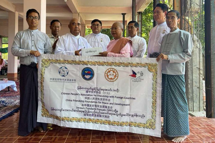 မြန်မာ-တရုတ် ချစ်ကြည်ရေးအသင်း(ဗဟို)မှ ဥက္ကဋ္ဌ ဦးတင်ဦး၊ ဒုတိယဥက္ကဋ္ဌများ၊ အတွင်းရေးမှူးများနှင့် အဖွဲ့ဝင်များသည် ဇွန် ၇ ရက်နှင့် ၈ ရက်တို့တွင် ငလျင်ဒဏ်သင့် နေပြည်တော်နှင့် ပျဉ်းမနားမြို့နယ်များသို့ သွားရောက်၍ အလှူငွေများ လှူဒါန်းကြသည်။