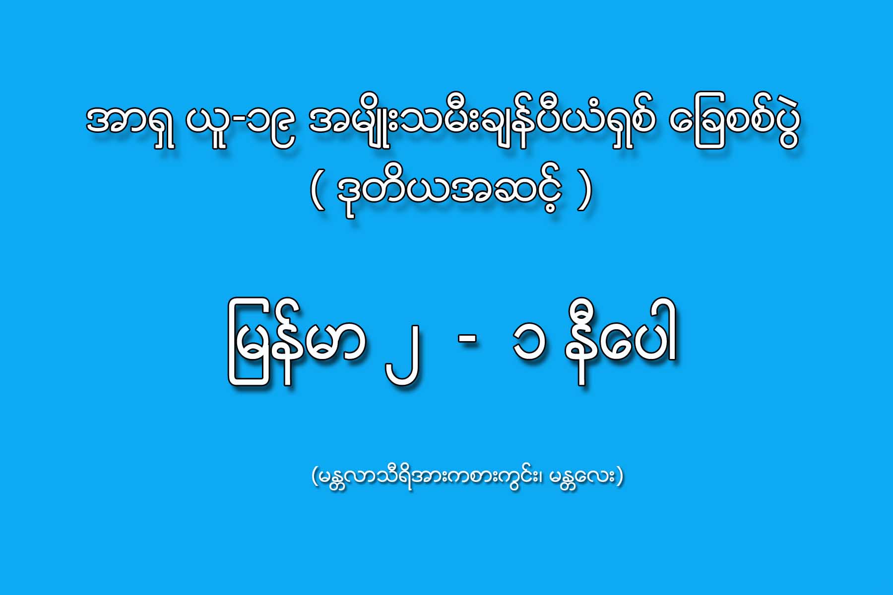 အာရှ ယူ-၁၉ အမျိုးသမီးချန်ပီယံရှစ် ခြေစစ်ပွဲ ဒုတိယအဆင့် အုပ်စု(က) နောက်ဆုံးပွဲစဉ်အဖြစ် အိမ်ရှင် မြန်မာအသင်းနှင့် နီပေါအသင်းတို့ မန္တလေးမြို့ မန္တလာသီရိအားကစားကွင်းတွင် ယနေ့ည ၇ နာရီက ယှဉ်ပြိုင်ကစားကြရာ အိမ်ရှင်မြန်မာအသင်းက ၂ ဂိုး ၁ ဂိုးဖြင့် အနိုင်ရရှိခဲ့ပြီး အာရှခြေစစ်ပွဲ အောင်မြင်သွားပြီဖြစ်သည်။