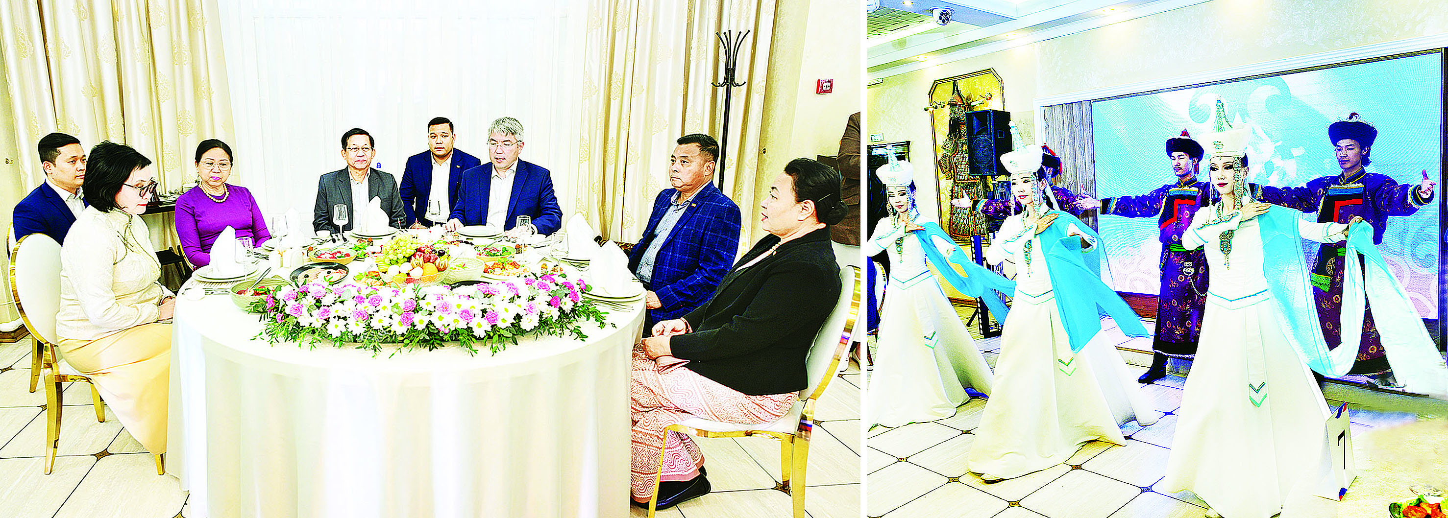 ညစာ သုံးဆောင်နေစဉ် အတွင်း Buryatia ပြည်နယ်၊ အမျိုးသားကဇာတ်ရုံမှ ရိုးရာအက အလှအဖွဲ့များက တေးသံသာများ၊ အကအလှများဖြင့် ဖျော်ဖြေ တင်ဆက်ခဲ့ကြသည်။