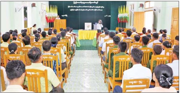 မြန်မာအီလက်ထရောနစ်မဲပေးစက်(MEVM) အသုံးပြုခြင်းဆိုင်ရာ နည်းပြဆရာဖြစ် သင်တန်းဖွင့်ပွဲနှင့် လက်တွေ့စမ်းသပ်မဲပေးခြင်း အခမ်းအနားကို ယနေ့နံနက်ပိုင်းတွင် စစ်ကိုင်းတိုင်းဒေသကြီး ဟုမ္မလင်း မြို့နယ် ဟုမ္မလင်းခရိုင် စုပေါင်းရုံးအစည်းအဝေး ခန်းမ၌ကျင်းပရာ တိုင်းဒေသကြီးဝန်ကြီးချုပ် ဦးမြတ်ကျော်၊ ပြည်ထောင်စုရွေးကောက်ပွဲ ကော်မရှင်ရုံးမှ တာဝန်ရှိသူများ၊ တိုင်းဒေသကြီး တိုင်းရင်းသားရေးရာဝန်ကြီး၊ တိုင်းဒေသကြီး၊ ခရိုင်နှင့် မြို့နယ်အဆင့်ဌာနဆိုင်ရာများ၊ သင်တန်းသား သင်တန်းသူများ တက်ရောက်ကြသည်။