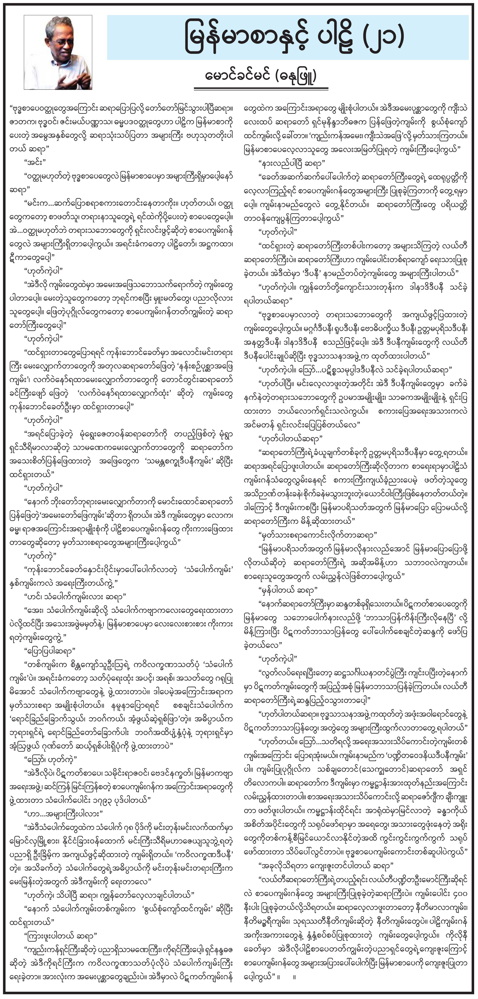 မြန်မာစာနှင့် ပါဠိ (၂၁)