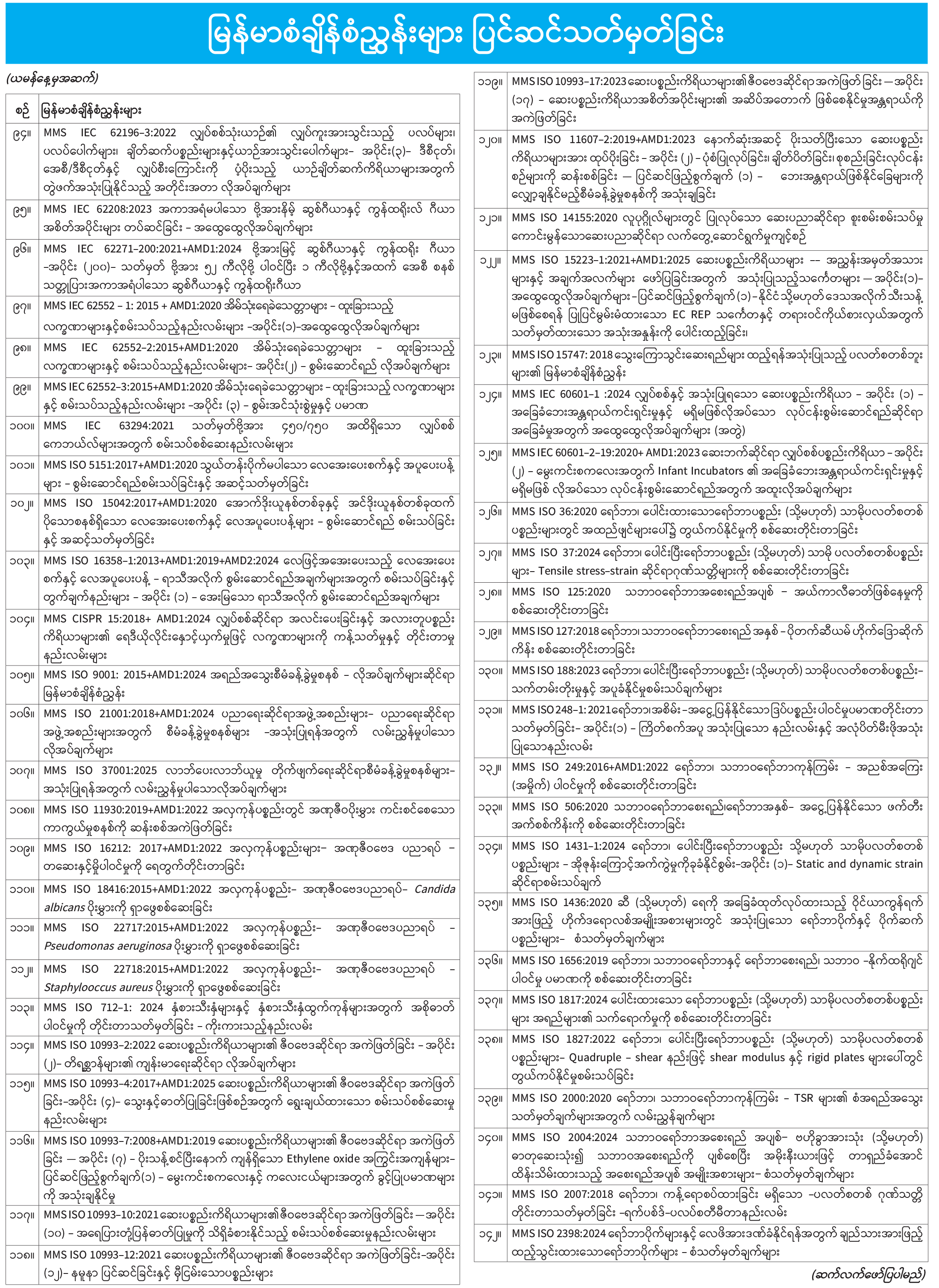 မြန်မာစံချိန်စံညွှန်းများ ပြင်ဆင်သတ်မှတ်ခြင်း