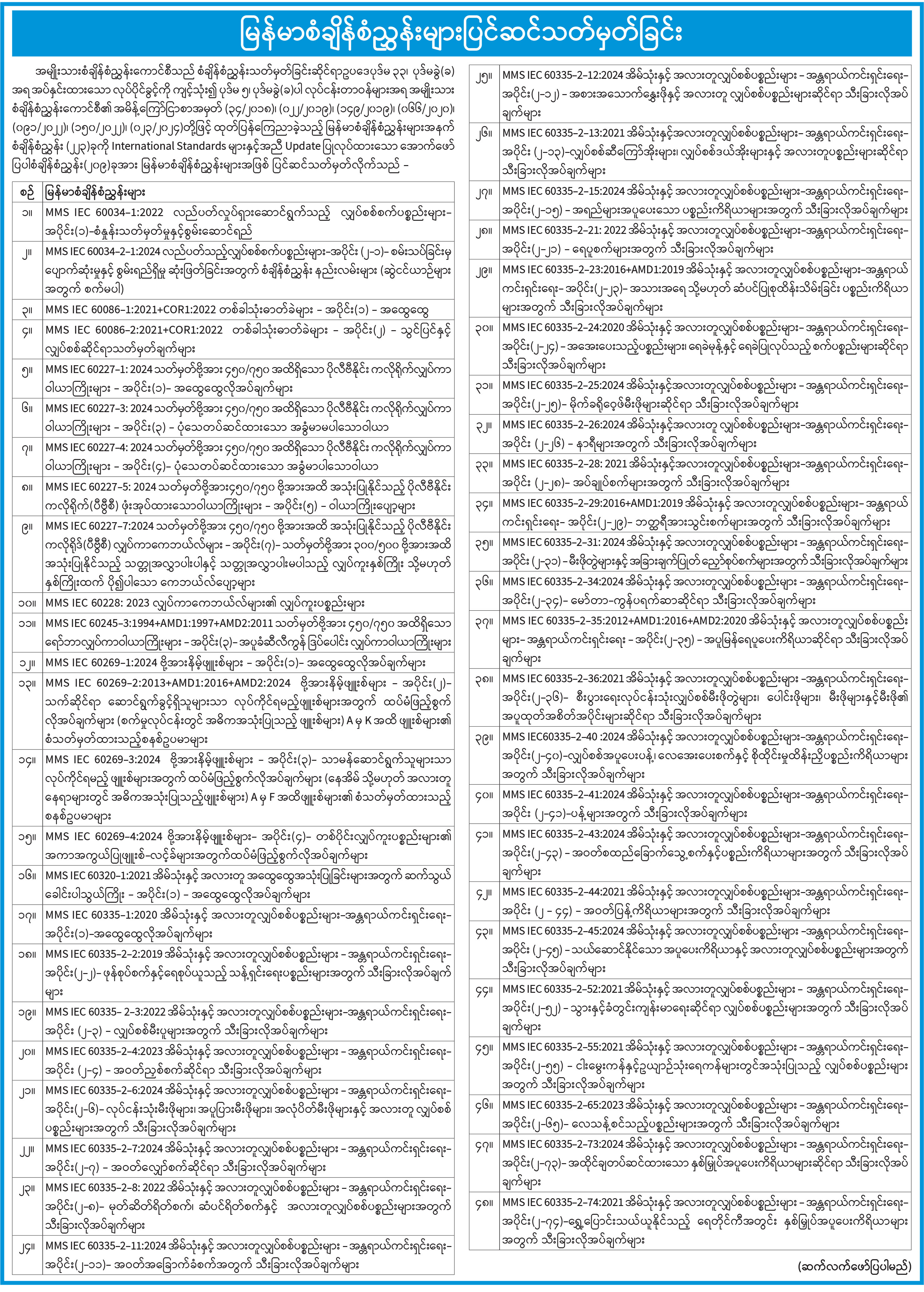 မြန်မာစံချိန်စံညွှန်းများပြင်ဆင်သတ်မှတ်ခြင်း