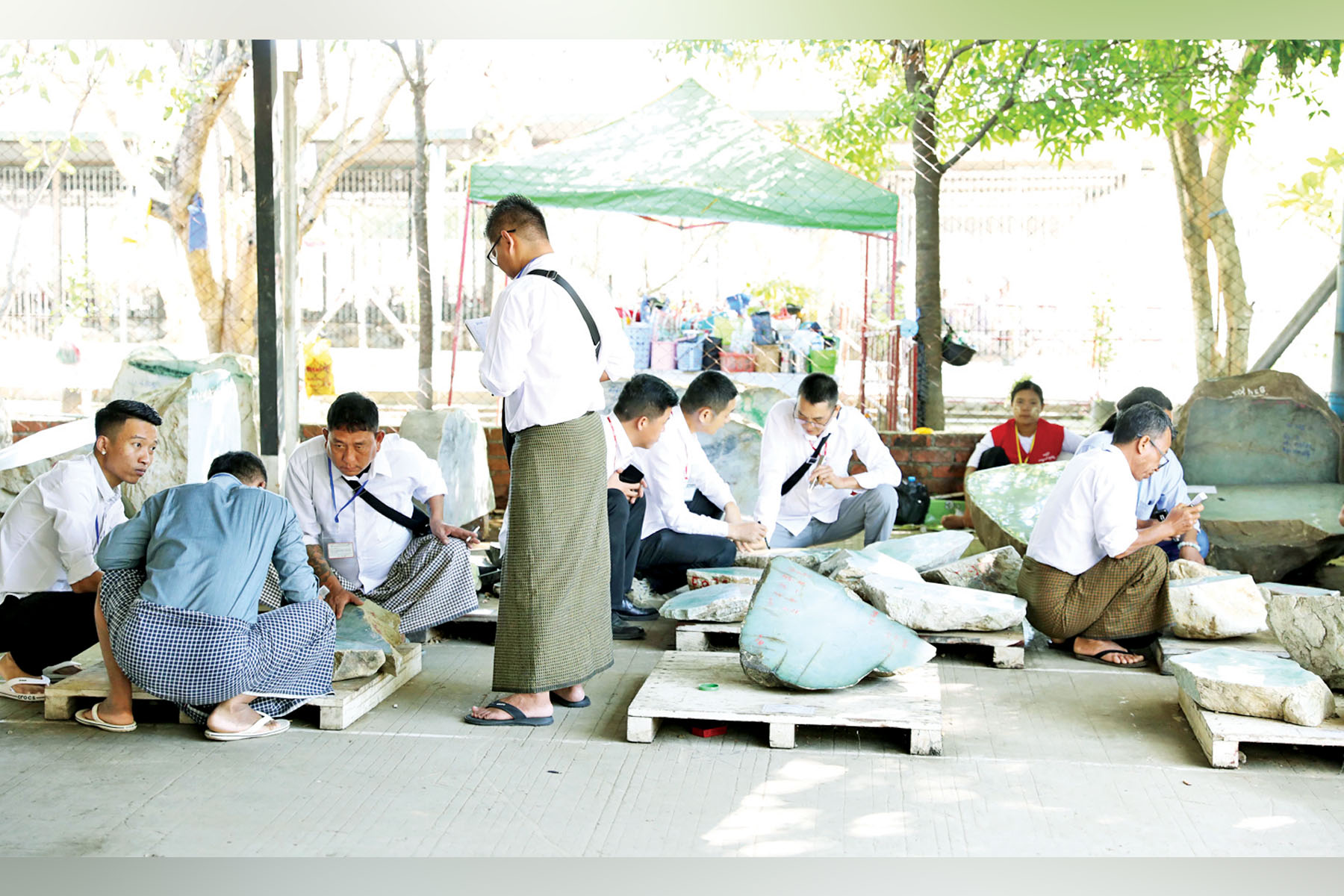 ယနေ့ညနေပိုင်းတွင် မြန်မာ့ကျောက်မျက် ရတနာပြပွဲ ဗဟိုကော်မတီနာယက သယံဇာတနှင့် သဘာဝပတ်ဝန်းကျင်ထိန်းသိမ်းရေးဝန်ကြီးဌာန ပြည်ထောင်စုဝန်ကြီး ဦးခင်မောင်ရီသည် ပြပွဲကျင်းပရာ မဏိရတနာကျောက်စိမ်းခန်းမ၌ ကျောက်စိမ်းအတွဲများ တင်ဒါဖွင့်ဖောက်စစ်ဆေး နေမှုကို လိုက်လံကြည့်ရှုစစ်ဆေးပြီး လိုအပ်သည်များကို တာဝန်ရှိသူများအား မှာကြားသည်၊၊