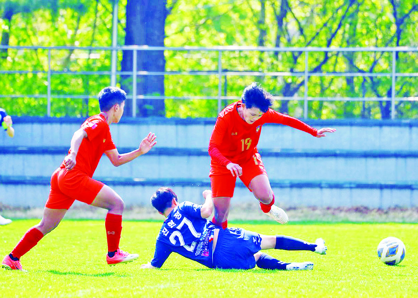 မြန်မာအမျိုးသမီးအသင်းသည် ဦးဆောင်ဂိုး သွင်းယူနိုင်သော်လည်း ဂိုးပြန်ပေးခဲ့ရသဖြင့် တစ်ဂိုးစီသရေရလဒ်ဖြင့် ပြီးဆုံးခဲ့သည်။ မြန်မာအမျိုးသမီးအသင်းသည် ဧပြီ ၂၉ ရက်က တောင်ကိုရီးယား ယူ-၂၀ အသင်းနှင့် ခြေစမ်းကစားခဲ့သည့် ပွဲထွက်လူစာရင်းကို အပြောင်းအလဲများ ပြုလုပ်ခဲ့ပြီး စီနီယာကစားသမားများကို လူငယ်ကစားသမားများဖြင့် ပေါင်းစပ်ကာ ဇူးလတ်နဒီ (ဂိုး)၊ ခင်သန်းဝေ၊ ဇွန်ယုယဦး၊ အေးအေးမိုး၊ ခိုင်သဇင်၊ ခင်မိုမိုထွန်း၊ နော်ထက်ထက်ဝေ၊ ခင်မာလာထွန်း၊ စန်းသော်သော်၊ လင်းမြင့်မိုရ်၊ ဂျူလိုင်ကျော်တို့ဖြင့် ပွဲထွက်ခဲ့သည်။