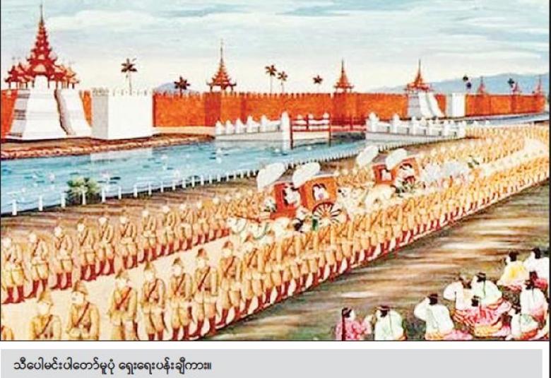 အခမ်းအနားမပါဗလာသက်သက်ဖြင့် စစ်ဗာရီများခြံရံလျက် ကြက်ကလေး၊ ငှက်ကလေးသဖွယ် ဗီရိုလှည်းဖြင့် ဖမ်းဆီးခေါ်ဆောင်သွားခဲ့သည်။ ထိုနေ့တိုင်မီတိုင်းပြည်မှာ ကျဆုံးခဲ့ပြီးဖြစ်သည်။ မြန်မာတစ်နိုင်ငံလုံး လွတ်လပ်ရေး ဆုံးရှုံးခဲ့ရသည်။ ယင်းနေ့သည် အင်းဝခံတပ်မှ မြန်မာ့သူရဲကြီး အောင်လံတော်ကို ဗြိတိသျှစစ်သားများက အလံတိုင်မှ ဆွဲချခဲ့သောနေ့ဖြစ်သည်။