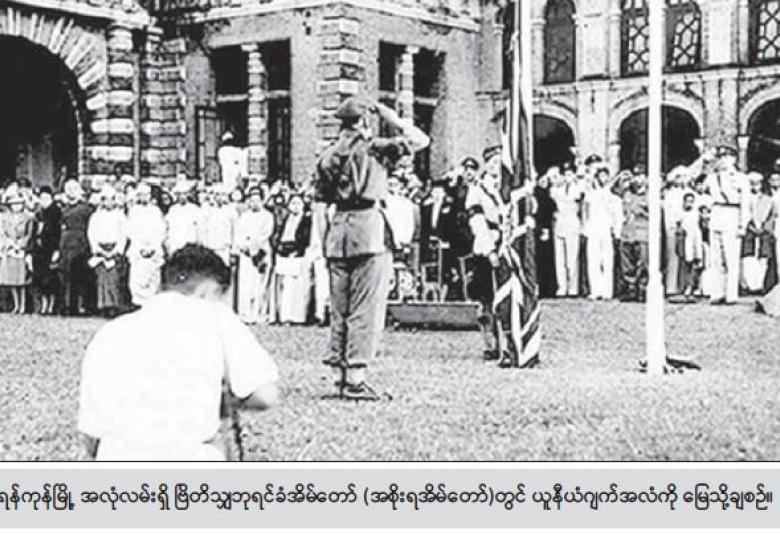 ဇန်နဝါရီလ ၄ ရက်နေ့ နံနက် ၄ နာရီ မိနစ် ၂၀ တိတိ အချိန်တွင် ရန်ကုန်မြစ်ဆိပ်ကမ်းတွင် ဆိုက်ကပ်ထားသော မြန်မာ့ရေတပ်မတော် မေယုသင်္ဘောနှင့် ဗြိတိသျှ ရေတပ်မတော် အိပ်ခ်ျ-အမ်-အက်စ်ဘာမင်ဂန် သင်္ဘောဆီမှ အမြောက်ပစ်ဖောက်သံများကို ရန်ကုန်တစ်မြို့လုံး ကြားလိုက်ရသည်။ အမြောက်ပစ်ဖောက်သံသည် မိုးလုံးလျှံမက တစ်မြို့လုံး မြည်ဟိန်းသွားသည်။ တဒိန်းဒိန်း အမြောက်ပစ်ဖောက်သံများသည် မြို့သူမြို့သားများ၏နှလုံးသားများကိုတဒုံးဒုံဆုကာ တဖြန်းဖြန်းထစေခဲ့သည်။ “ဪ- ဒီအချိန်ဟာ ငါတို့ဆုံးရှုံးခဲ့တဲ့ လွတ်လပ်ရေးကြီး အမှန်တကယ် ပြန်ရပါပြီကော" ဟု ကြည်နူးလှိုက်လှဲ အူထဲအသည်းထဲမှဝမ်းပန်ဘာသာဖြင့် ပျော်မဆုံးမော်မဆုံး ဖြစ်ခဲ့ကြသည်။