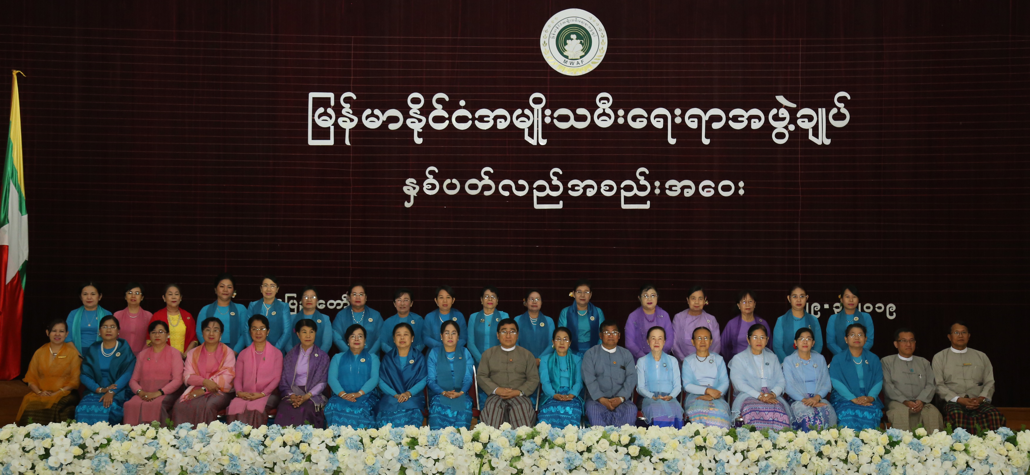 အခမ်းအနားတွင် မြန်မာနိုင်ငံလုံးဆိုင်ရာ အမျိုးသမီးကော်မတီ ဥက္ကဋ္ဌ ပြည်ထောင်စုဝန်ကြီး ဒေါက်တာဝင်းမြတ်အေးက အမျိုးသမီးများ၏ ဘဝလုံခြုံမှုနှင့် ဖွံ့ဖြိုးတိုးတက်မှုအတွက် မြန်မာနိုင်ငံ အမျိုးသမီးရေးရာအဖွဲ့ချုပ်မှ ရည်ရွယ်ချက်ထားရှိ၍ ကျယ်ကျယ်ပြန့်ပြန့် ဆောင်ရွက်နေမှုသည် အမျိုးသမီးများ၏အရေးကို အစိုးရက အလေးထား ဆောင်ရွက်နေမှုများနှင့် ထပ်တူကျပါကြောင်း၊ အစိုးရအနေဖြင့် အမျိုးသမီးထုတစ်ရပ်လုံး အခွင့်အရေးများရရှိရေး၊ လုံခြုံစိတ်ချစွာ နေထိုင်ရေး၊ ဖွံ့ဖြိုးတိုးတက်ရေးတို့အတွက် အမျိုးသမီးများ တန်းတူညီမျှခံစားရရှိရေး၊ အမျိုးသမီးများ၏ ပါဝင်ခွင့် ပိုမိုရရှိရေးတို့ကို မူဝါဒများ၊ ဥပဒေများ၊ မဟာဗျူဟာများ၊ လုပ်ငန်းစဉ်များချမှတ်၍ အကောင်အထည် ဖော်လျက်ရှိကြောင်း၊ အမျိုးသမီးများအရေးကို ဆောင်ရွက်ရာတွင် အစိုးရဌာနများ၊ အစိုးရ မဟုတ်သော အဖွဲ့အစည်းများအပြင် အရပ်ဖက်အဖွဲ့အစည်းများ၏ ပါဝင်ဆောင်ရွက်မှုသည် အရေးကြီးသဖြင့် အမျိုးသမီးထုအတွက် အပြောင်းအလဲကို ဖော်ဆောင်ရန်နှင့် အားလုံးစုပေါင်းဆောင်ရွက်၍ အောင်မြင်မှု ပိုမိုရရှိနိုင်ရန် ရည်ရွယ်လျက် မြန်မာနိုင်ငံလုံးဆိုင်ရာ အမျိုးသမီးကော်မတီ အမည်သစ်ဖြင့် အစိုးရ ဦးဆောင်သော ယန္တရားတစ်ရပ်ကို ၂၀၁၈ ခုနှစ် ဇွန် ၂၀ ရက်တွင် ပြန်လည်ဖွဲ့စည်းခဲ့ကြောင်း၊