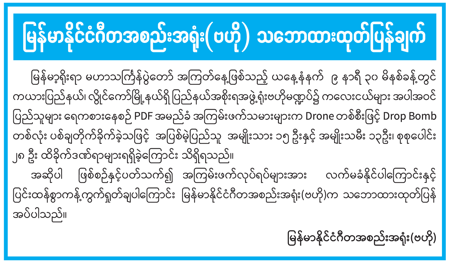 မြန်မာနိုင်ငံ ဂီတအစည်းအရုံး(ဗဟို) သဘောထားထုတ်ပြန်