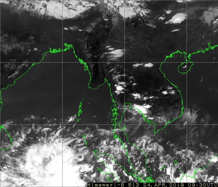 မိုးလေဝသနှင့်ဇလဗေဒညွှန်ကြားမှုဦးစီးဌာနမှ ယနေ့ ညနေ ၄ နာရီထုတ်ပြန်ချက်အရ ကပ္ပလီပင်လယ်ပြင်နှင့် ဘင်္ဂလားပင်လယ်အော်တောင်ပိုင်းတို့တွင် တိမ်အသင့်အတင့်မှ တိမ်ထူထပ်နေပြီး၊ ကျန်ဘင်္ဂလားပင်လယ်အော်တွင် တိမ်အနည်းငယ် ဖြစ်ထွန်းနေပါသည်။