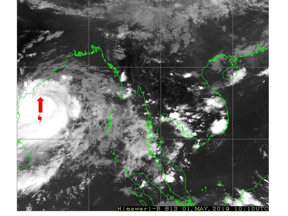 အဆိုပါ အလွန့်အလွန်အားကောင်းသော ဆိုင်ကလုန်း မုန်တိုင်း "ဖန်နီ" (FANI)သည် အနောက်မြောက်ဘက်သို့ ဆက်လက်ရွေ့လျားမည်ဟု ခန့်မှန်းရပါသည်။ ဘင်္ဂလားပင်လယ်အော်မြောက်ပိုင်းတွင် တိမ်အသင့်အတင့် ဖြစ်ထွန်းနေပြီး၊ ကပ္ပလီပင်လယ်ပြင်နှင့် ကျန်ဘင်္ဂလားပင်လယ်အော်တို့တွင် တိမ် ထူထပ်နေပါသည်။
