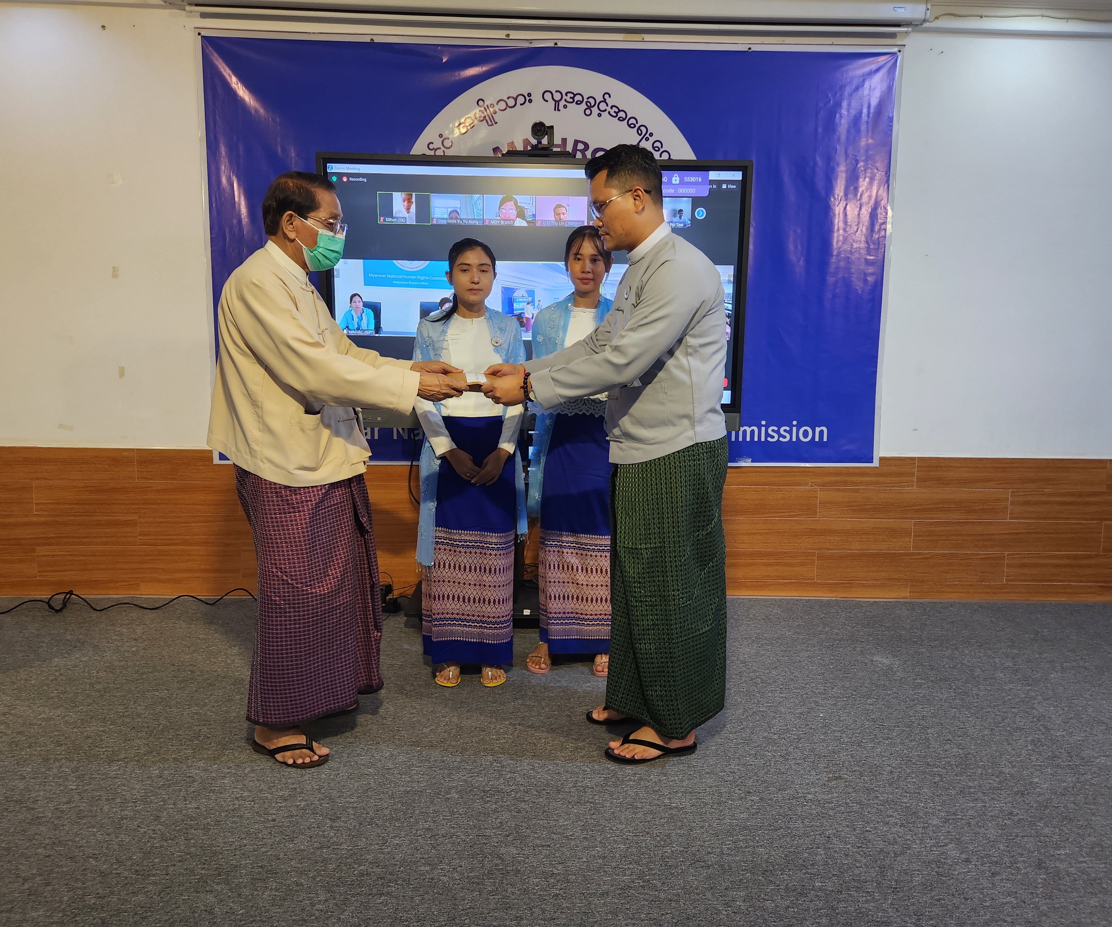 ထို့နောက် ကော်မရှင်ဥက္ကဋ္ဌက စီမံရေးရာနှင့် ဘဏ္ဍာရေးဌာနရှိ ဝန်ထမ်းများအတွက် ပညာသင်ထောက်ပံ့ကြေး ပေးအပ်ပြီး ကော်မရှင်အဖွဲ့ဝင်များက နိုင်ငံတကာဆက်ဆံရေးဌာနရှိ ဝန်ထမ်းများ၊ လူ့အခွင့်အရေးကာကွယ် စောင့်ရှောက်ဌာနရှိ ဝန်ထမ်းများ၊ e-Government ဌာနရှိ ဝန်ထမ်းများ၊ လူ့အခွင့်အရေးမြှင့်တင်ရေးနှင့် ပညာပေးရေးဌာနရှိ ဝန်ထမ်းများ၊ ဥပဒေရေးရာဌာနရှိ ဝန်ထမ်းများအတွက် ပညာသင်ထောက်ပံ့ကြေးပေးအပ်ရာ ဌာနအလိုက် အမှုထမ်းငယ်များကိုယ်စား ဌာနတာဝန်ခံများက လက်ခံကြသည်။