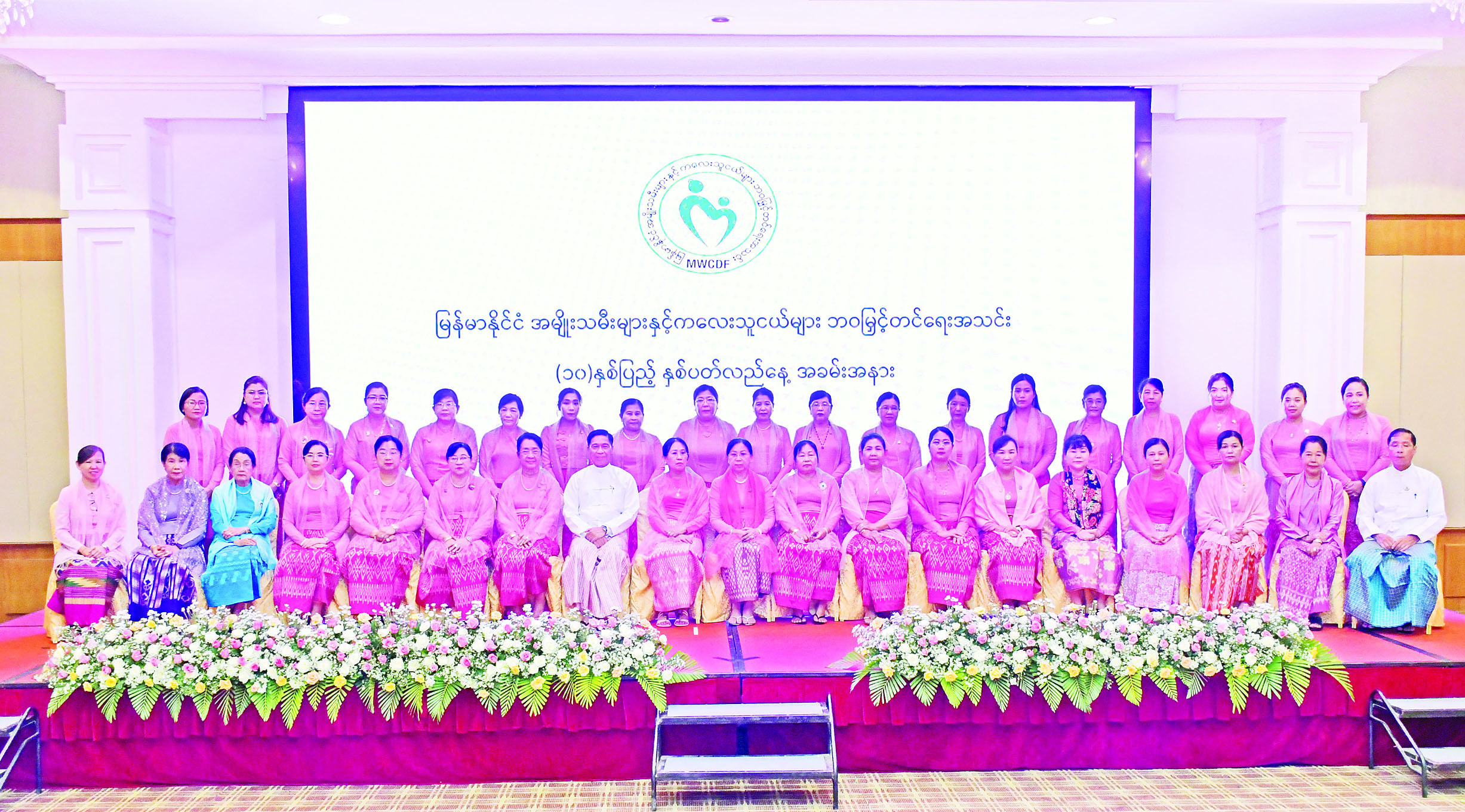 မြန်မာနိုင်ငံ အမျိုးသမီးများနှင့် ကလေးသူငယ်များဘဝ မြှင့်တင်ရေးအသင်း၏ (၁၀)နှစ်ပြည့် နှစ်ပတ်လည်နေ့ အခမ်းအနားကို ယနေ့ နံနက်၉ နာရီက နေပြည် တော်ရှိ Horizon Lake View ဟိုတယ်၌ ကျင်းပရာ အခမ်းအနားသို့ နိုင်ငံတော်စီမံအုပ်ချုပ်ရေးကောင်စီဥက္ကဋ္ဌ၏ဇနီး မြန်မာနိုင်ငံအမျိုးသမီးများနှင့် ကလေးသူငယ်များဘဝ မြှင့်တင်ရေး အသင်း၏ ဂုဏ်ထူးဆောင်နာယက ဒေါ်ကြူကြူလှနှင့် မြန်မာနိုင်ငံအမျိုးသမီးရေးရာအဖွဲ့ချုပ် ဂုဏ်ထူးဆောင် နာယကများဖြစ်ကြသည့် ဒေါ်ခင် သက်ဌေးနှင့် ဒေါ်သန်းသန်းနွယ်တို့ တက်ရောက်ချီးမြှင့်ကြသည်။