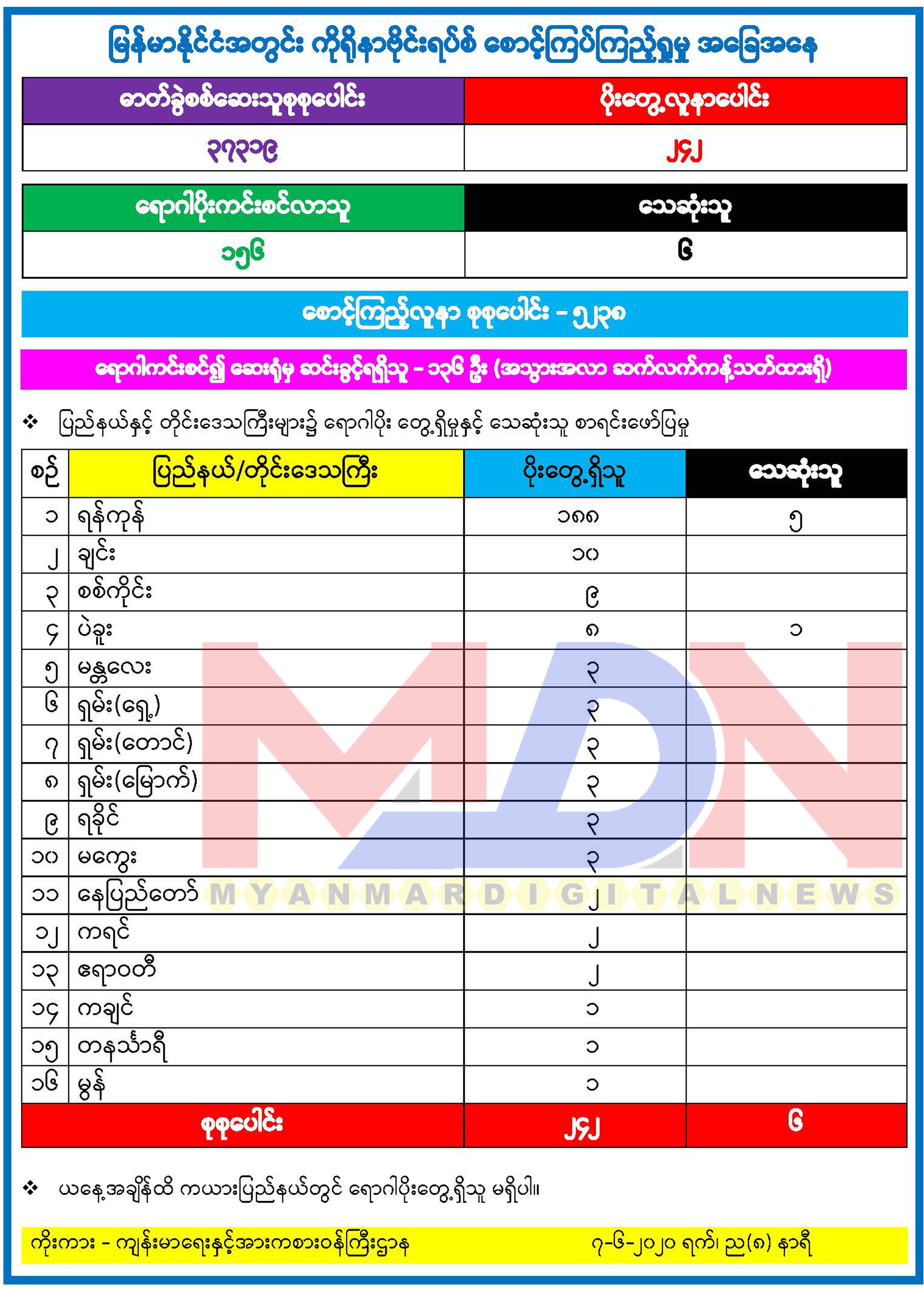 မြန်မာနိုင်ငံအတွင်း ကိုရိုနာဗိုင်းရပ်စ် စောင့်ကြပ်ကြည့်ရှုမှု အခြေအနေ