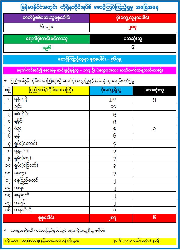 မြန်မာနိုင်ငံအတွင်း ကိုရိုနာဗိုင်းရပ်စ် စောင့်ကြပ်ကြည့်ရှုမှု အခြေအနေ