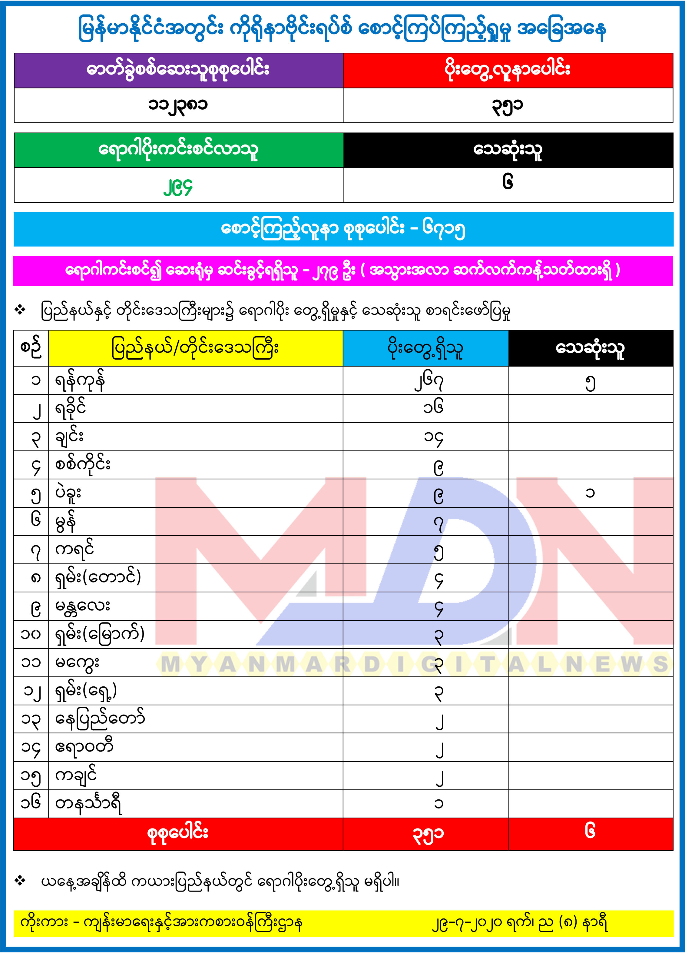 မြန်မာနိုင်ငံအတွင်း ကိုရိုနာဗိုင်းရပ်စ် စောင့်ကြပ်ကြည့်ရှုမှု အခြေအနေ