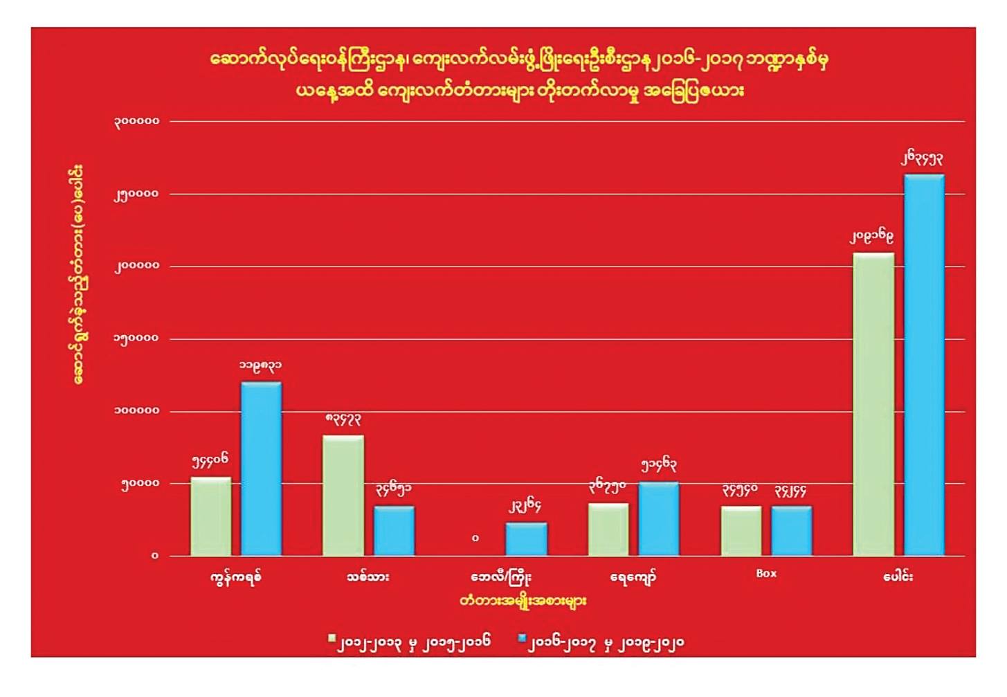 ရှမ်းပြည်နယ်(တောင်ပိုင်း)တွင် လမ်း အရှည် ၂၂၉ မိုင် ၄ ဖာလုံရှိရာတွင် BOT စနစ်ဖြင့် တောင်ပေါ်ဒေသ လမ်းဆောက်လုပ် ရေးကုမ္ပဏီက ၆၂ မိုင် ၄ ဖာလုံ၊ နေမင်းရောင် ဆောက်လုပ်ရေးကုမ္ပဏီက ၇၃ မိုင်နှင့် ရှမ်းပြည်နယ်(တောင်ပိုင်း) လမ်းဦးစီးဌာနက လမ်းအရှည် ၉၄ မိုင်တို့ကို လမ်းတိုးတက် ပြုပြင်ခြင်းလုပ်ငန်းများ တာဝန်ယူဆောင်ရွက် လျက်ရှိသည်။ တောင်ပေါ်ဒေသ လမ်း ဆောက်လုပ်ရေးကုမ္ပဏီက BOT စနစ်ဖြင့် ကလောမြို့မှ တောင်ကြီးမြို့အထိ လမ်း အရှည် ၄၅ မိုင်ကို လေးလမ်းသွား နိုင်လွန် ကတ္တရာလမ်းအဖြစ် အဆင့်တိုးမြှင့် ဆောင်ရွက်နိုင်ခဲ့သည်။ ရှမ်းပြည်နယ် (တောင်ပိုင်း)နှင့် ရှမ်းပြည်နယ်(အရှေ့ပိုင်း)နယ်စပ် သံလွင်မြစ်ကူးတံတားဘေးတွင် ဆောက်လုပ်ရေးဝန်ကြီးဌာနက တာကော် တံတားအသစ်(၁၁၅၁ ပေအရှည်) တစ်စင်း တည်ဆောက်လျက်ရှိကြောင်း သိရှိ ရသည်။