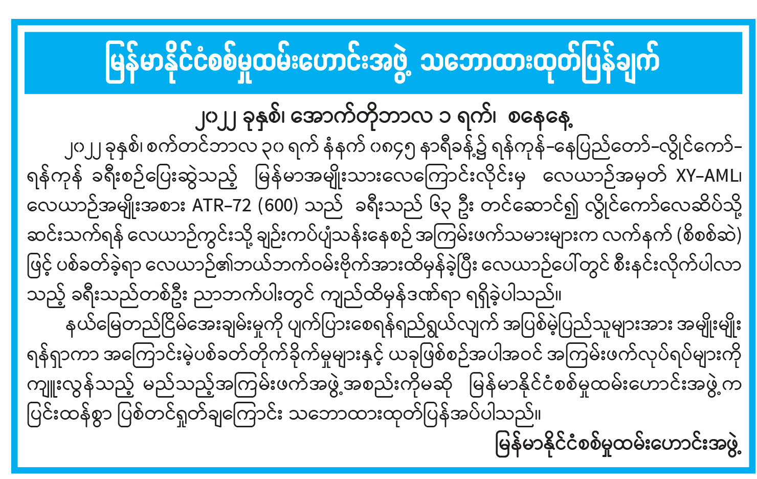 မြန်မာနိုင်ငံစစ်မှုထမ်းဟောင်းအဖွဲ့ သဘောထားထုတ်ပြန်ချက်