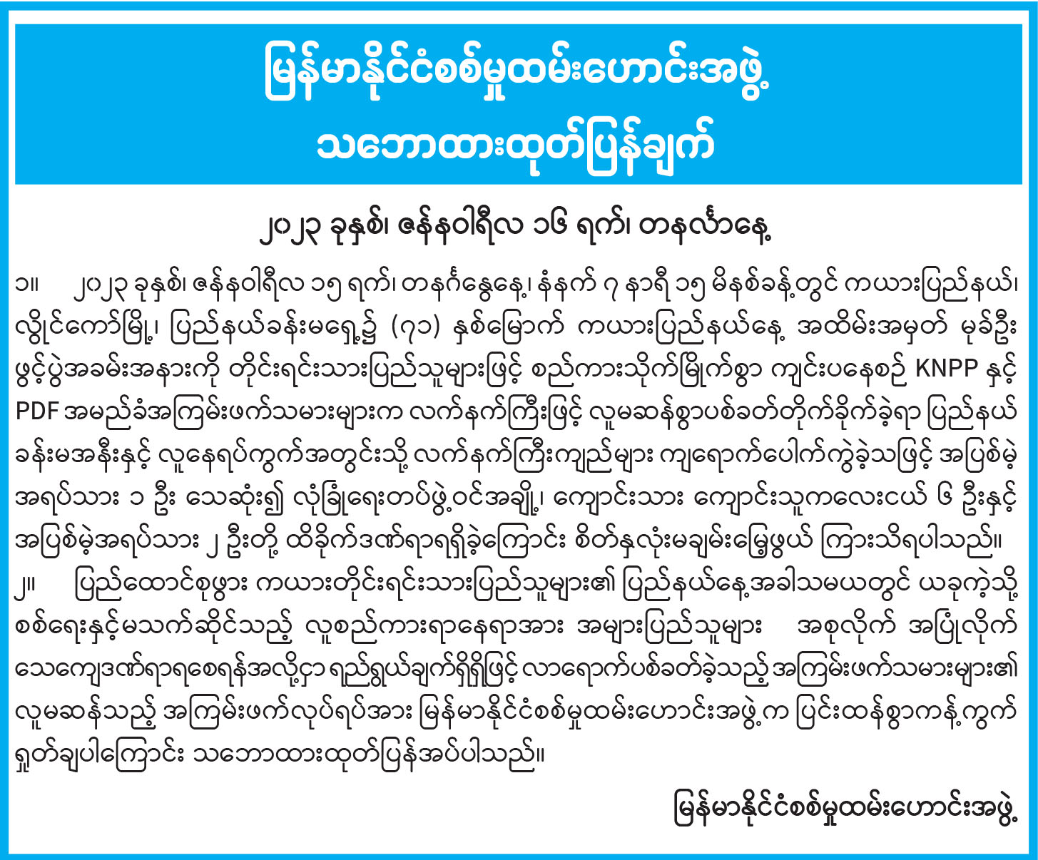 မြန်မာနိုင်ငံစစ်မှုထမ်းဟောင်းအဖွဲ့ သဘောထားထုတ်ပြန်ချက်