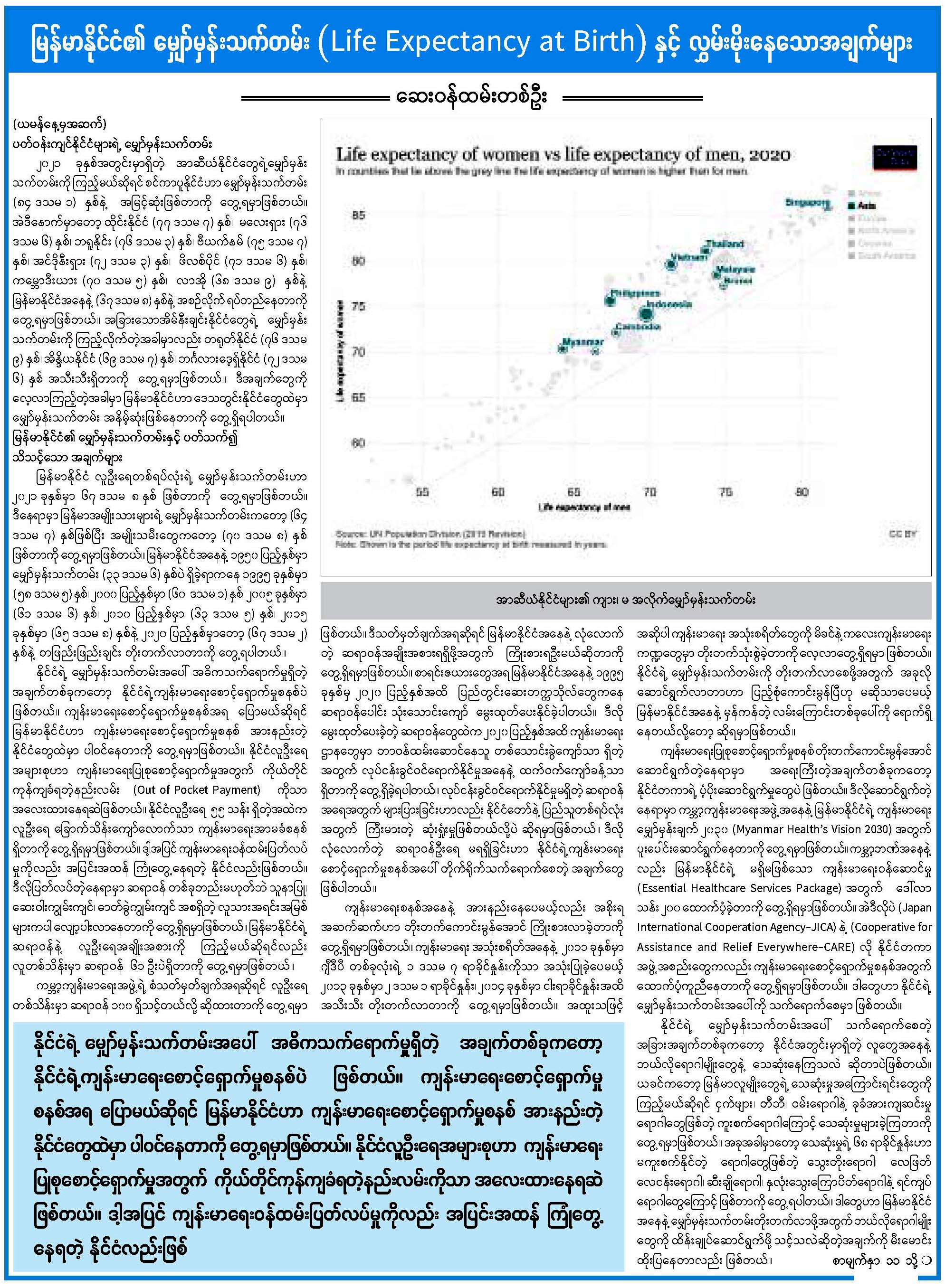 မြန်မာနိုင်ငံ၏ မျှော်မှန်းသက်တမ်း (Life Expectancy at Birth)နှင့် လွှမ်းမိုးနေသော အချက်များ
