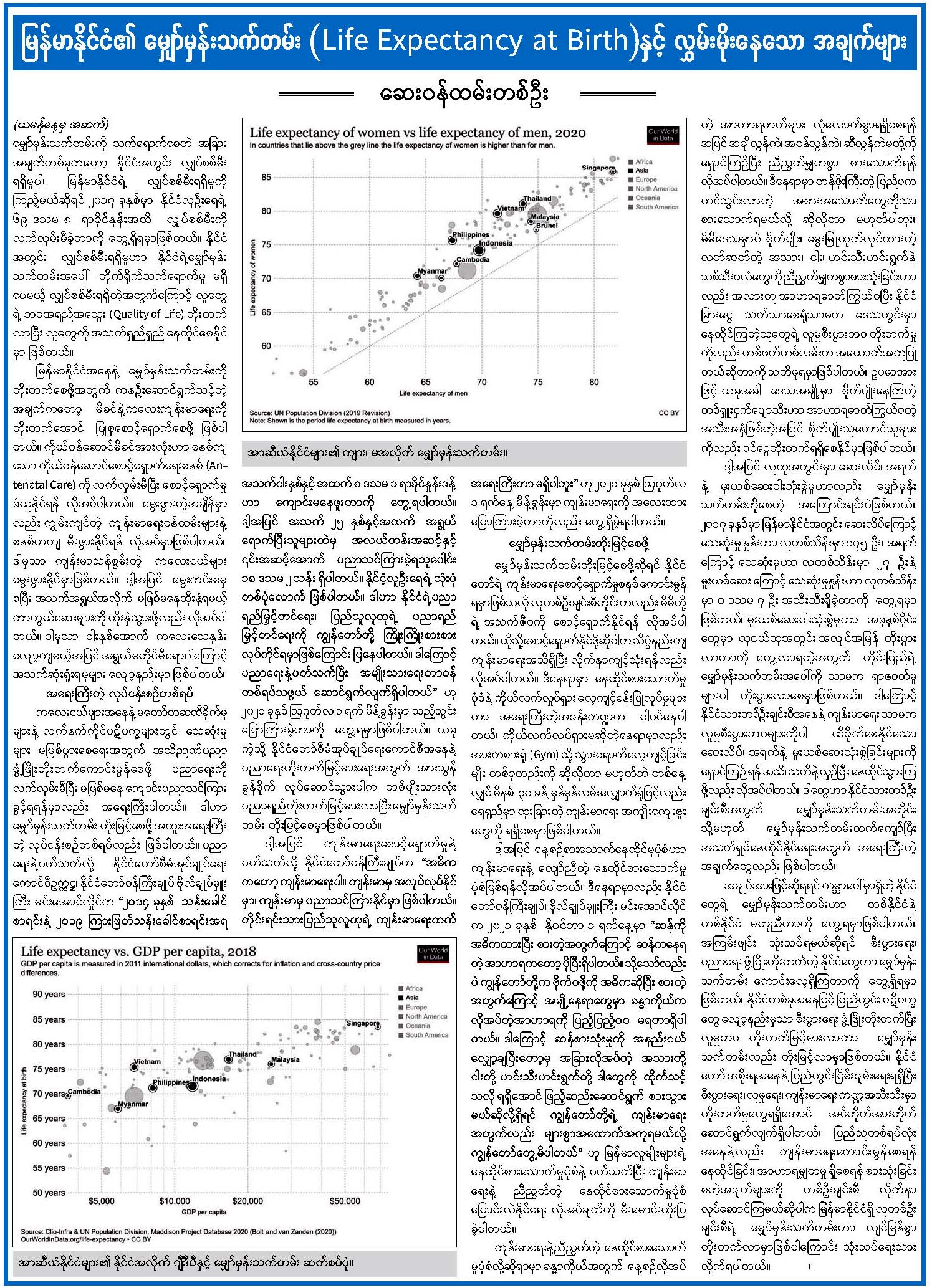 မြန်မာနိုင်ငံ၏ မျှော်မှန်းသက်တမ်း (Life Expectancy at Birth)နှင့် လွှမ်းမိုးနေသော အချက်များ