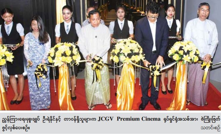 ထို့နောက် ညွန်ကြားရေးမှူးချုပ် ဦးရဲနိုင်၊ JCGVမှ CEO ဒေါ်မိမိခိုင်၊ CFO Ryu Seong Soo နှင့် တာဝန်ရှိသူ တို့က ဖဲကြိုးဖြတ် ဖွင့်လှစ်ပေးပြီး စုပေါင်းအမှတ်တရ ဓာတ်ပုံရိုက်ကာ Premium Cinema ရုပ်ရှင်ရုံသစ်တွင် ရုပ်ရှင်ဇာတ်ကား နမူနာပြသမှုကို ကြည့်ရှုကြသည်။