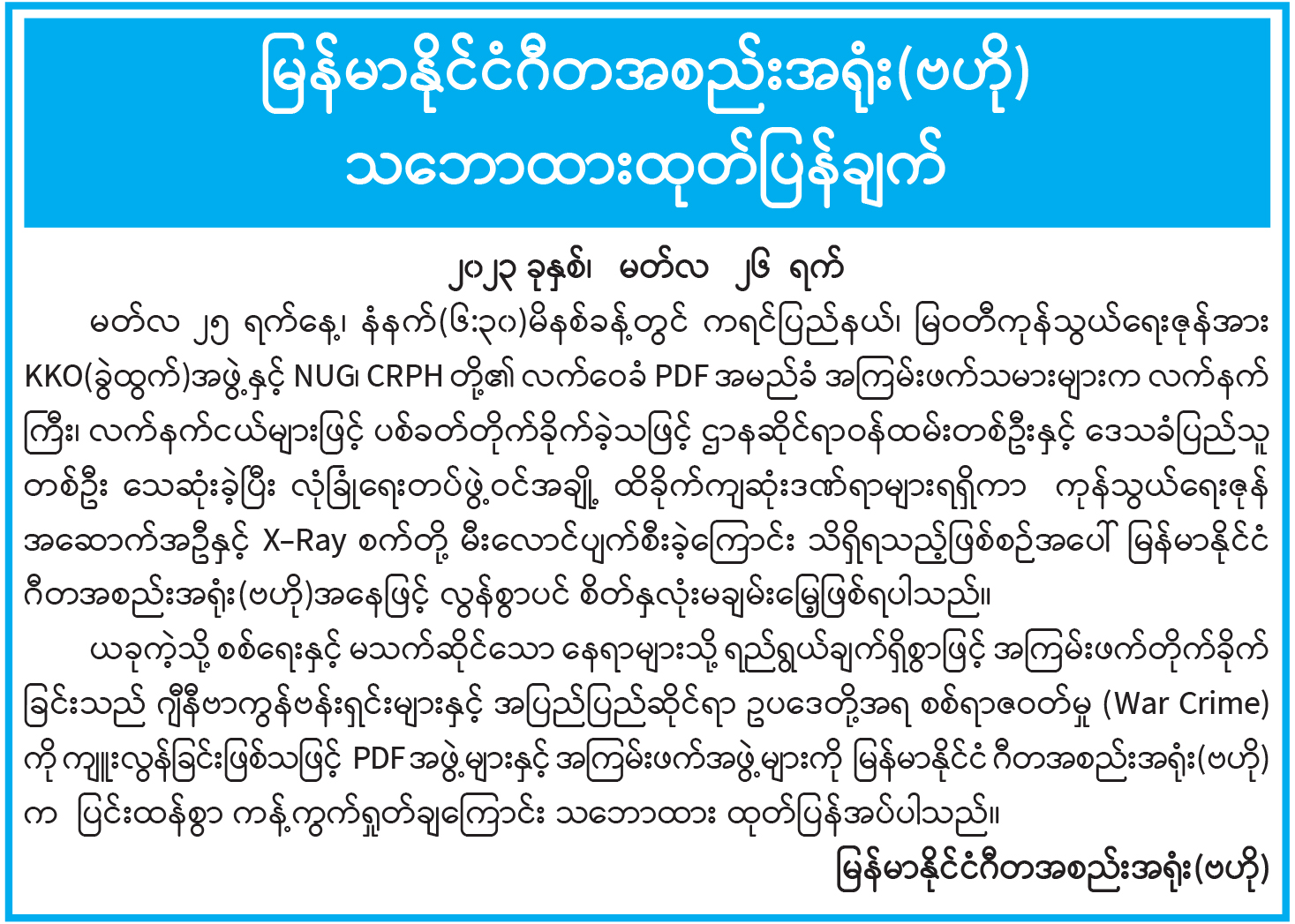 မြန်မာနိုင်ငံဂီတအစည်းအရုံး(ဗဟို)သဘောထားထုတ်ပြန်ချက်