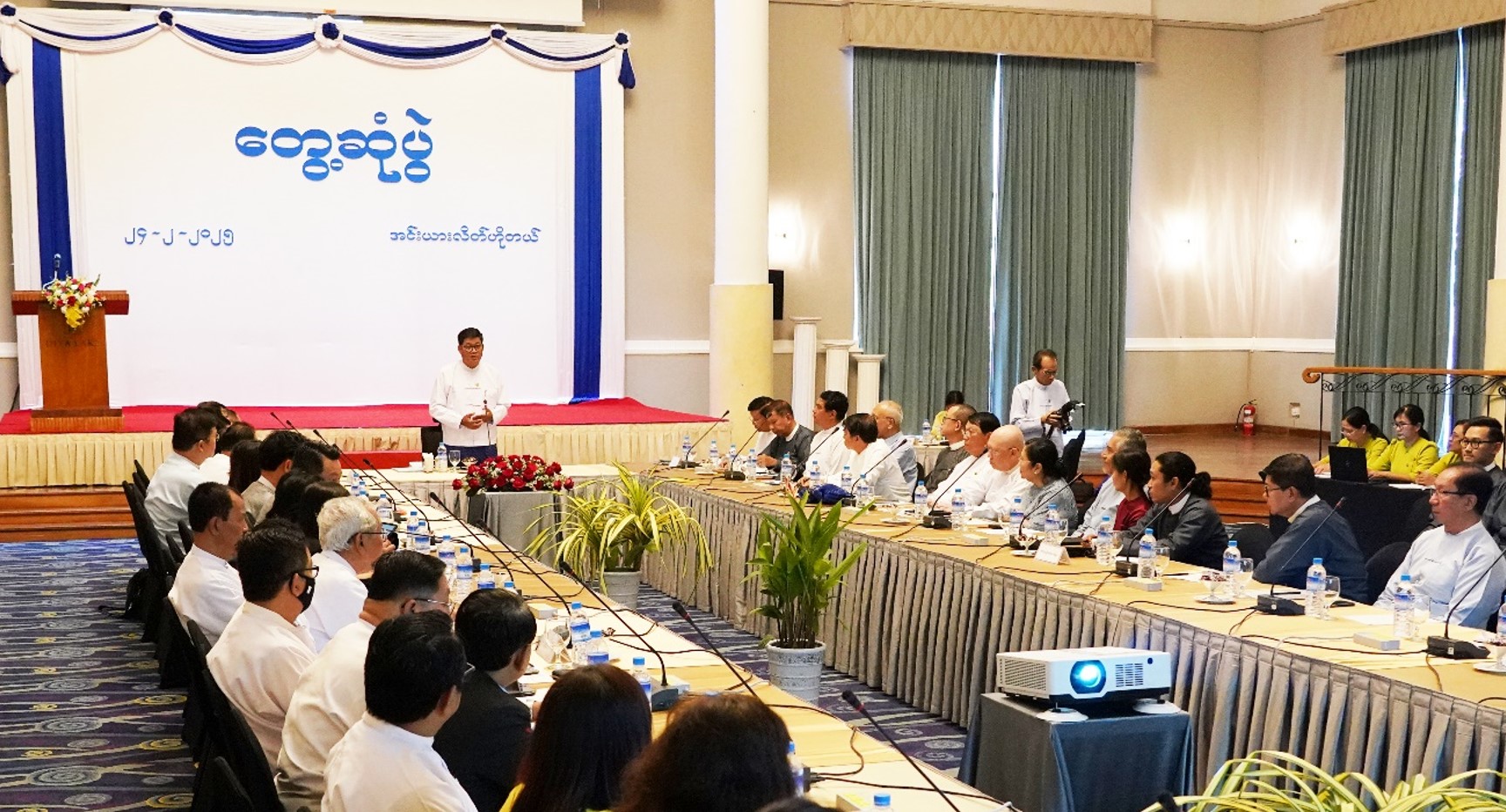 တွေ့ဆုံစဉ် ပြည်ထောင်စုဝန်ကြီးက ဝန်ကြီးဌာနအနေဖြင့် ခရီးသွားလုပ်ငန်းတိုးတက်ရေး ဆောင်ရွက်ရာတွင် မူဝါဒများကို ချမှတ်ပေးပြီး ပုဂ္ဂလိက ကဏ္ဍကသာ အဓိကထား အကောင်အထည်ဖော် ဆောင်ရွက်ရပါကြောင်း၊ ဝန်ကြီးဌာနအနေဖြင့် လုပ်ငန်းများ အောင်မြင်တိုးတက်ရန် လုပ်ထုံးလုပ်နည်းများနှင့်အညီ လိုအပ်သည်များကို ကူညီဆောင်ရွက်ပေးသွားမည် ဖြစ်ပါကြောင်း၊ နိုင်ငံတော်အစိုးရအနေဖြင့် ပြည်တွင်းခရီးသွားလုပ်ငန်းသာမက ပြည်ပခရီးသွားလုပ်ငန်း တိုးတက်ရေးအတွက်ကိုပါ အလေးထားသည့်အတွက် အသင်းအဖွဲ့များနှင့် လုပ်ငန်းလုပ်ကိုင်သူများက ပြည်ပခရီးသွားများ ပိုမိုဝင်ရောက်လာရေးကို အလေးထားဆောင်ရွက်သွား ကြစေလိုပါကြောင်း၊ မြန်မာနိုင်ငံဟိုတယ်နှင့် ခရီးသွားလုပ်ငန်း စနစ်တကျ ဖွံ့ဖြိုးတိုးတက်ရေးအတွက် အားလုံးဝိုင်းဝန်း ပူးပေါင်းဆောင်ရွက်ပေးကြစေလိုကြောင်း တိုက်တွန်းပြောကြား သည်။